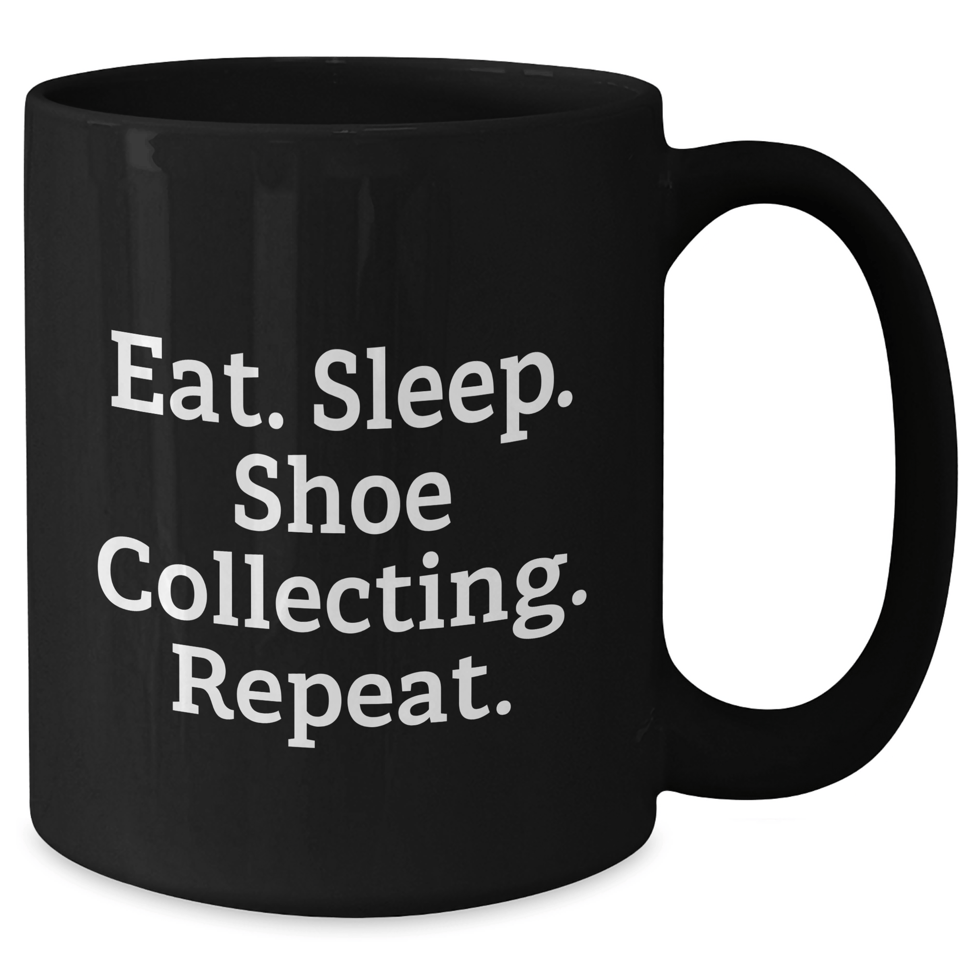 Are you tired of gifting the same old boring presents to your shoe collecting friends or family members? Look no further! This hilarious Eat. Sleep. Shoe Collecting. Repeat. black coffee mug is the ideal gift for any shoe enthusiast. The quote is funny, cute, and inspiring, making it a great addition to any shoe collector's morning routine. Made of ceramic, this mug is microwave and dishwasher safe, making it easy to clean and use. Whether you're a shoe collector yourself or just looking for a unique gift for someone who loves shoes, this mug is sure to bring a smile to their face. So why settle for a boring gift when you can give the gift of shoe collecting joy? Get this funny black coffee mug today and make someone's day!