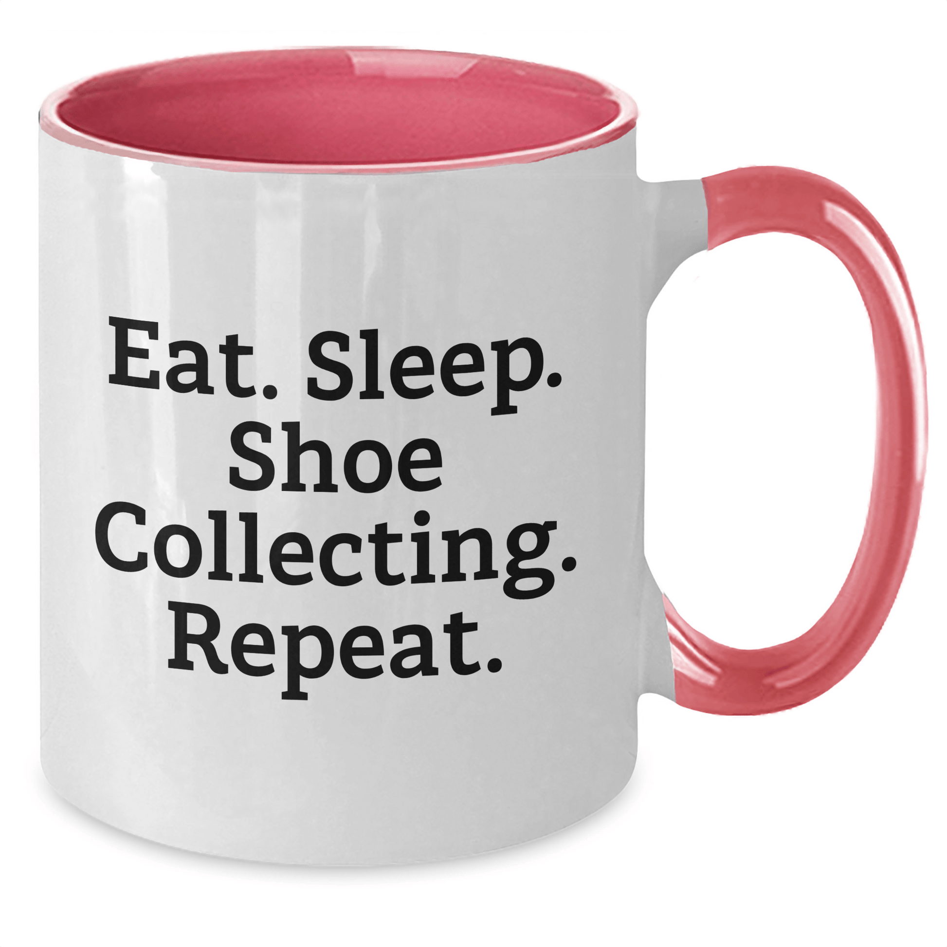 - This Two Tone Coffee Mug is the ideal gift for any shoe collector, with its funny and inspirational quote 'Eat. Sleep. Shoe Collecting. Repeat.'