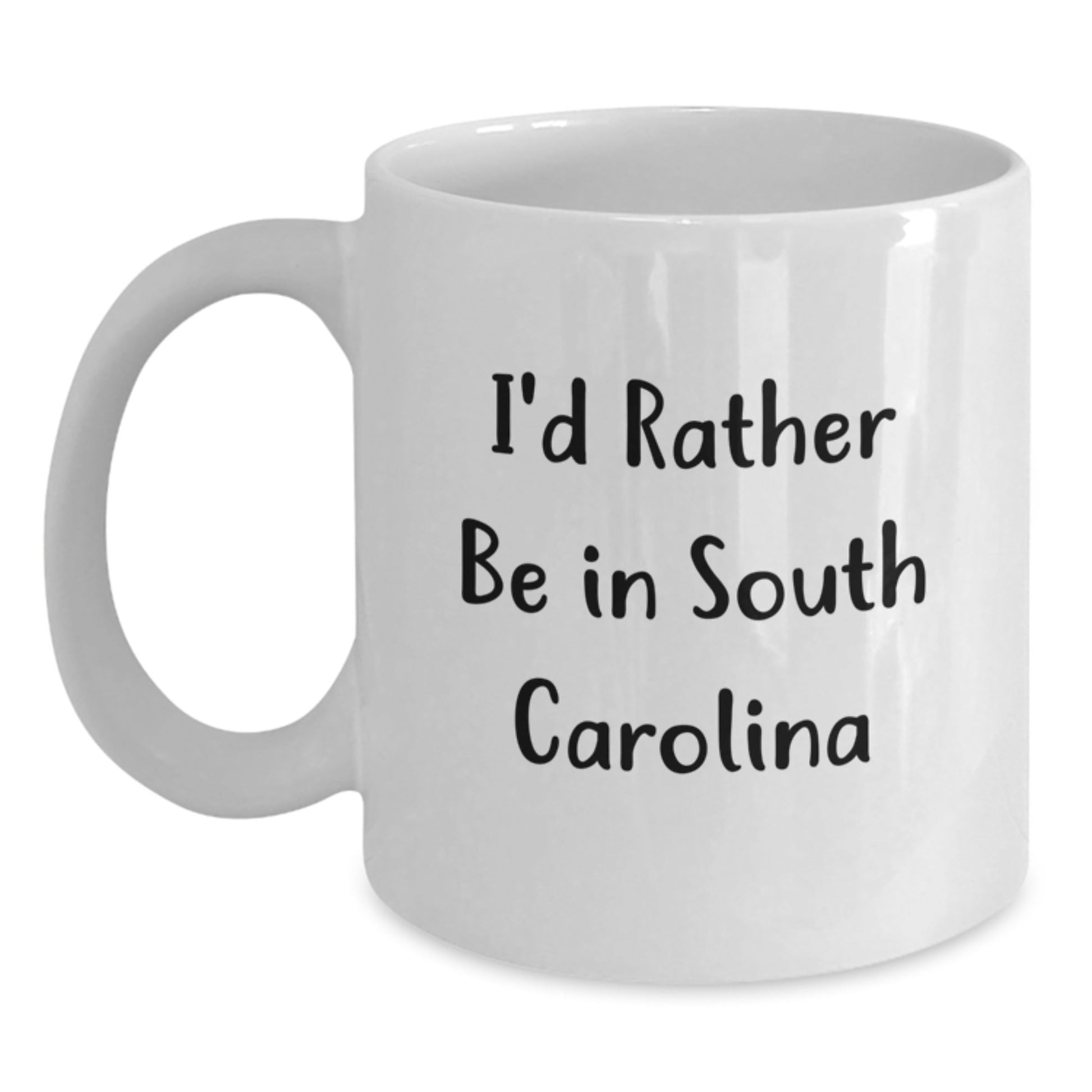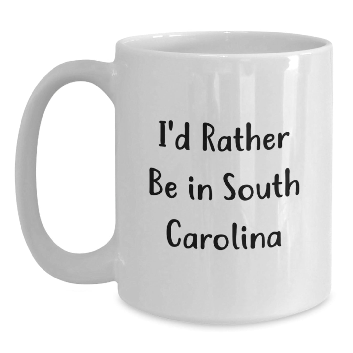 Are you ready to show off your love for the Palmetto State? This funny white coffee mug is a great gift idea for anyone who's obsessed with South Carolina! With its unique design and quote, 'I'd Rather Be In South Carolina', this mug is sure to bring a smile to any South Carolina enthusiast's face. Whether you're a native or just a fan of the state, this mug makes a great addition to any morning routine. Plus, the ceramic material and 11oz or 15oz capacity make it perfect for hot or cold beverages. Give this thoughtful gift to your favorite South Carolinian or anyone who loves the state as much as you do. Share the love and show off your Charleston, Columbia, or Greenville pride!
