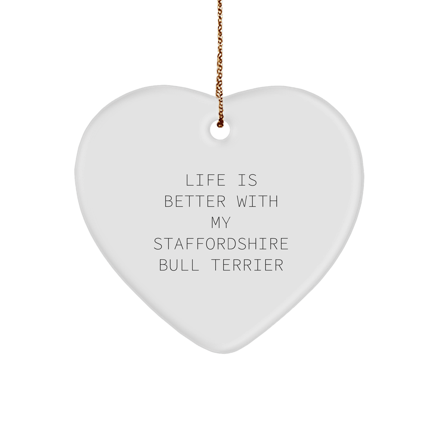 - This Heart Ornament is a thoughtful gift for any Staffordshire Bull Terrier Dog owner, featuring a cute design that captures the loving and loyal nature of the breed