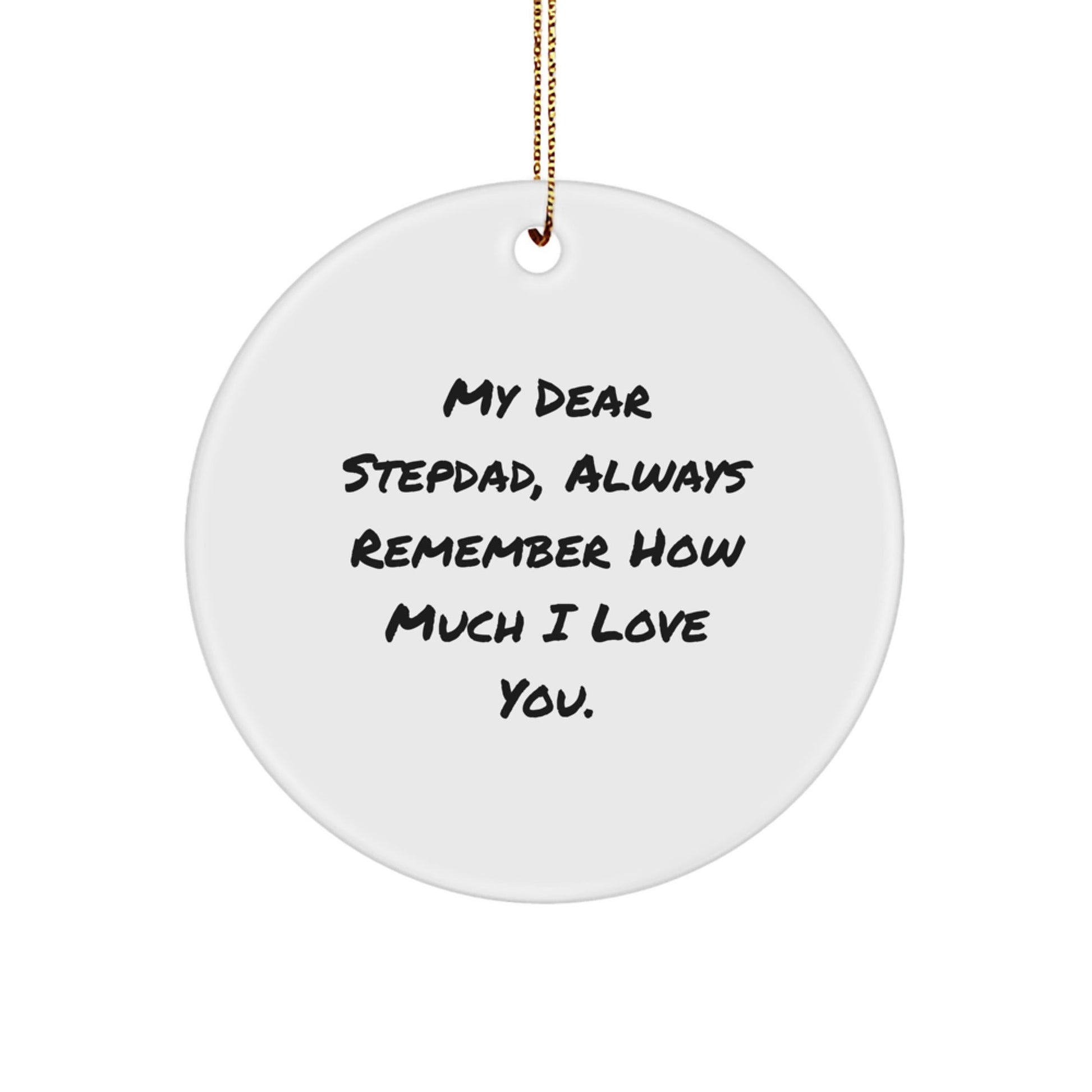Don't miss out on this opportunity to show your Stepdad how much you care. Order our 'My Dear Stepdad, Always Remember How Much I Love You.' Circle Ornament today and make this Christmas one to remember!