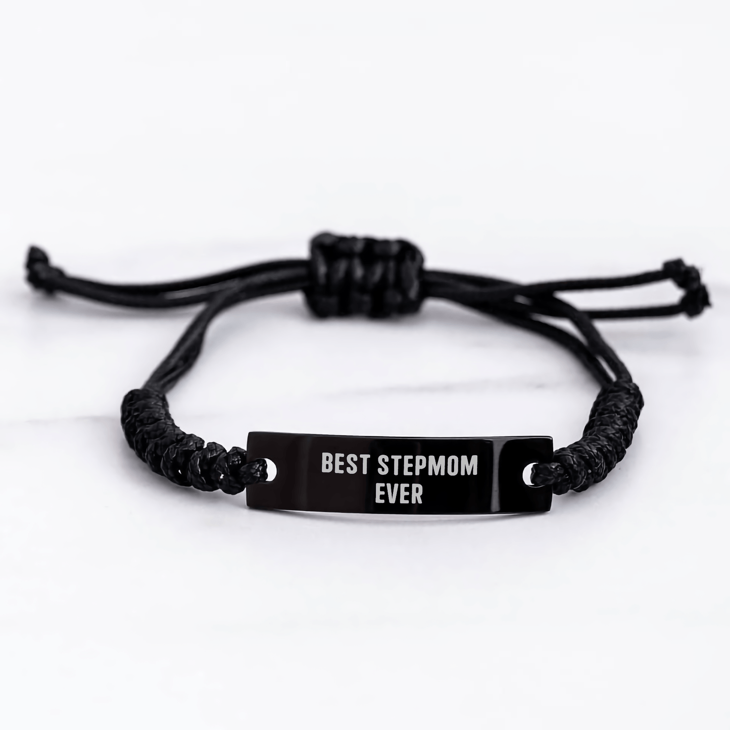 - Wear your feelings on your sleeve with this heartfelt rope bracelet. The 'Best Stepmom Ever' message is engraved on the black stainless steel with braided rope, making it a meaningful and unique gift for your stepmom. The adjustable length ensures a comfortable fit for any wrist, making it perfect for daily wear.