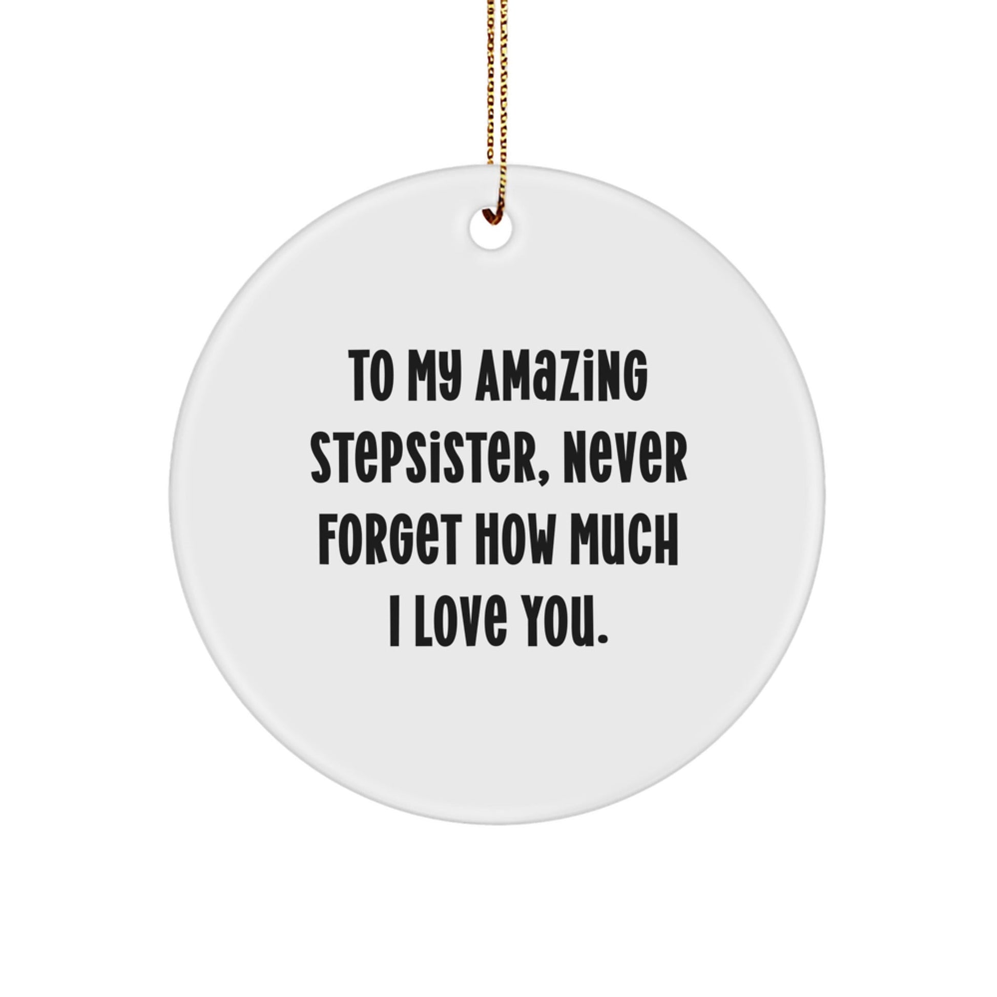 Are you looking for a unique and funny gift for your amazing stepsister? Look no further! This Circle Ornament is the perfect way to show your love and appreciation for her. The vibrant colors and cute design make it a great addition to any home, and the quote 'To My Amazing Stepsister, Never Forget How Much I Love You.' is a heartfelt message that will surely touch her heart.