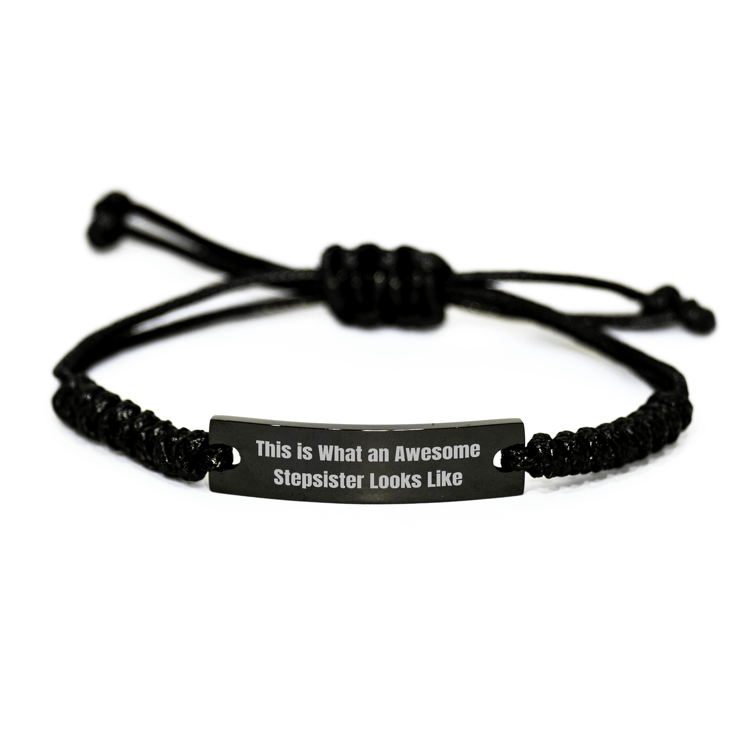 Funny Stepsister Gifts from Friends, 'This Is What An Awesome Stepsister Looks Like' Quote, Adjustable Rope Bracelet for Stepsisters Graduation