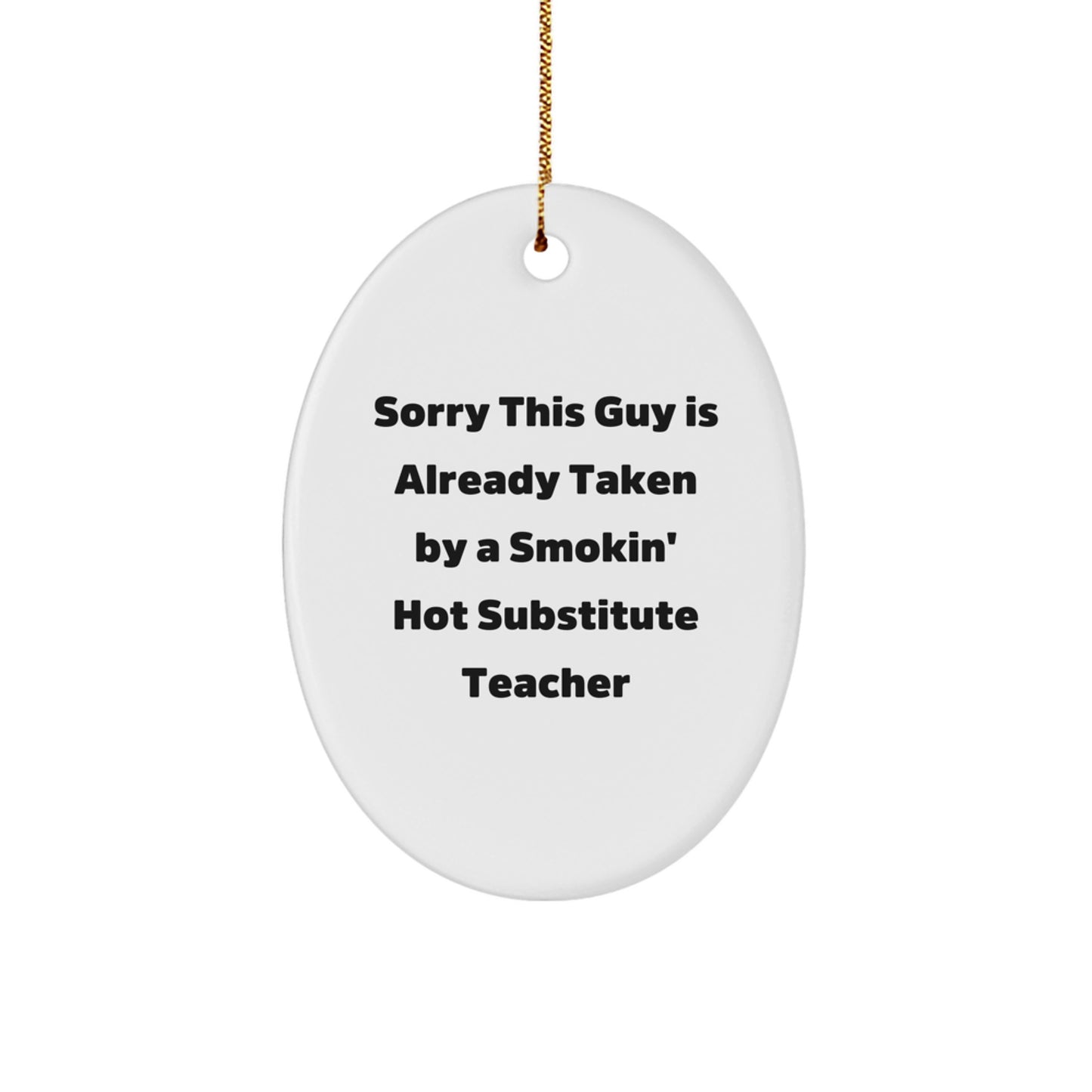 - This funny substitute teacher gift is a unique and thoughtful way to show your appreciation for their hard work. The quote 'Sorry This Guy Is Already Taken By A Smokin' Hot Substitute Teacher' is a humorous way to poke fun at the challenges of being a substitute teacher.