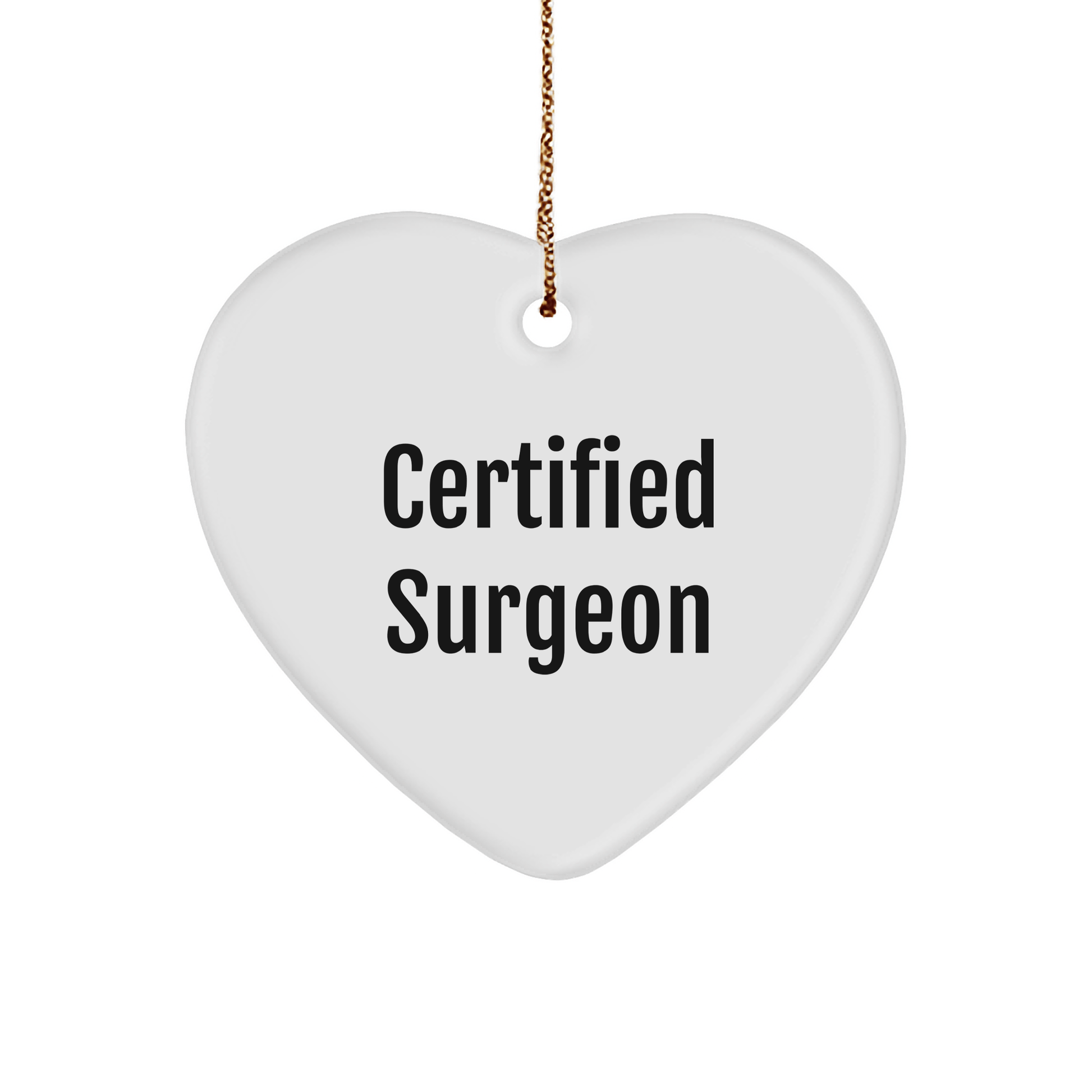 - Experience the precision and care of a 'Certified Surgeon' with this exceptional Heart Ornament, crafted with attention to detail and a focus on quality. Made from sturdy MDF and featuring a high-gloss plastic finish, this ornate heart shape is designed to last and withstand the rigors of daily life. Perfect for a Surgeon's office or home, this ornament is sure to impress.