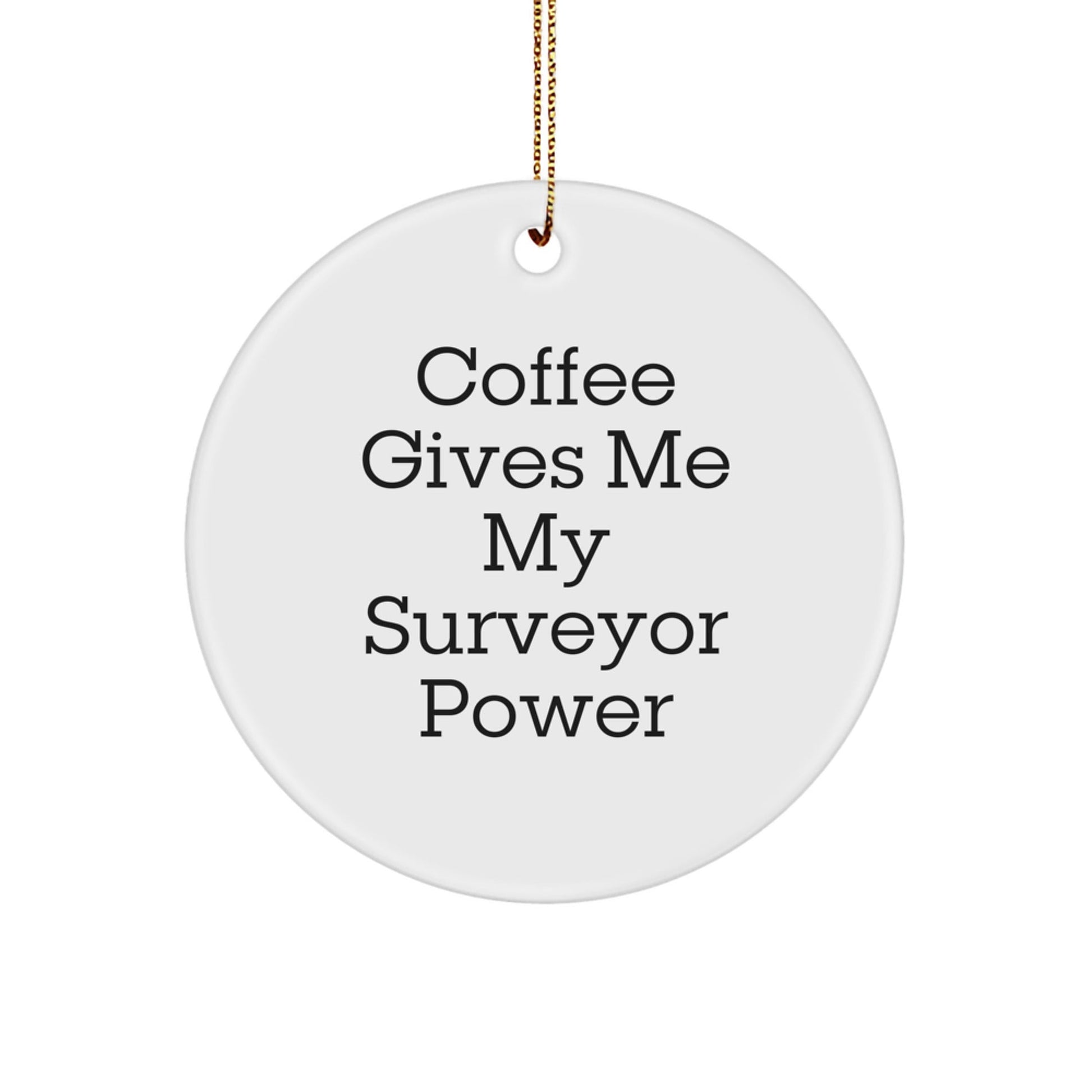 Calling all Surveyor enthusiasts! Are you a coffee lover who fuels your passion for surveying with a daily cup of joe? Then this unique Circle Ornament is a must-have for your holiday season. Featuring the quote 'Coffee Gives Me My Surveyor Power', this delightful ornament is sure to bring a smile to the face of your fellow Surveyor friends and family.