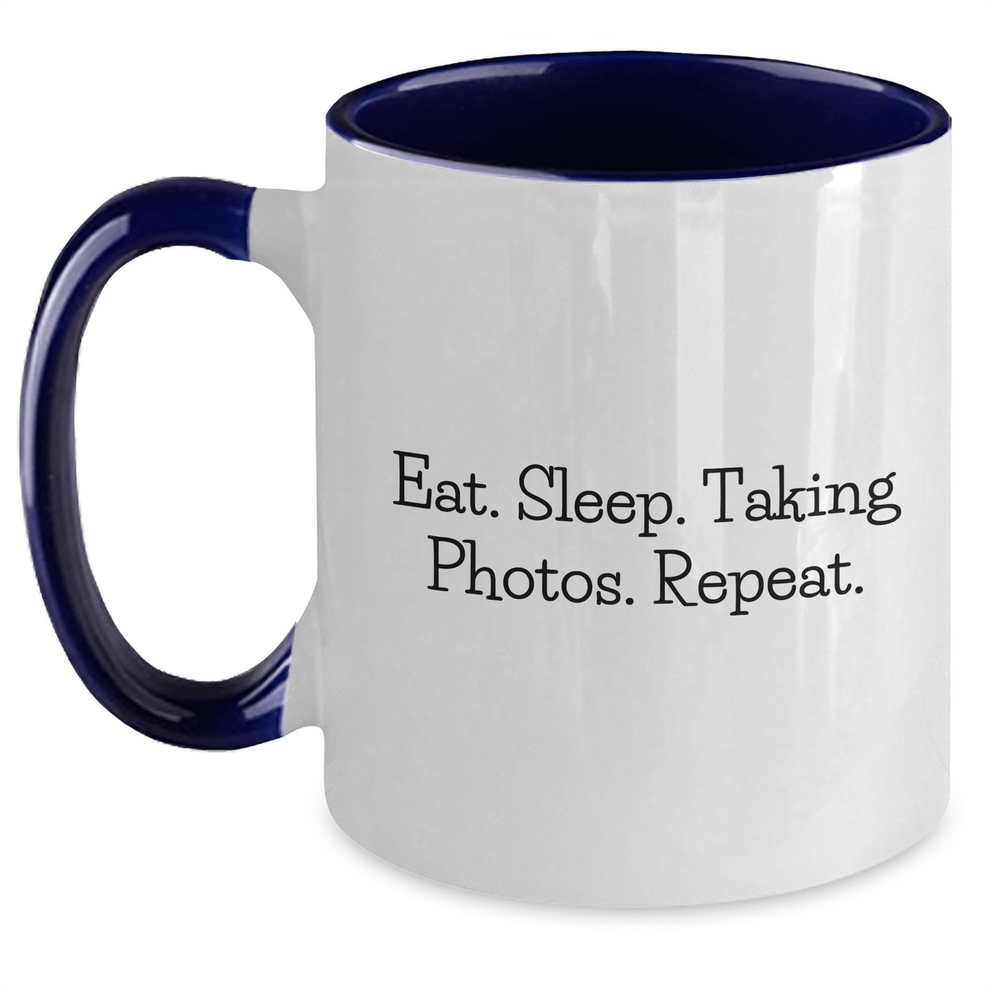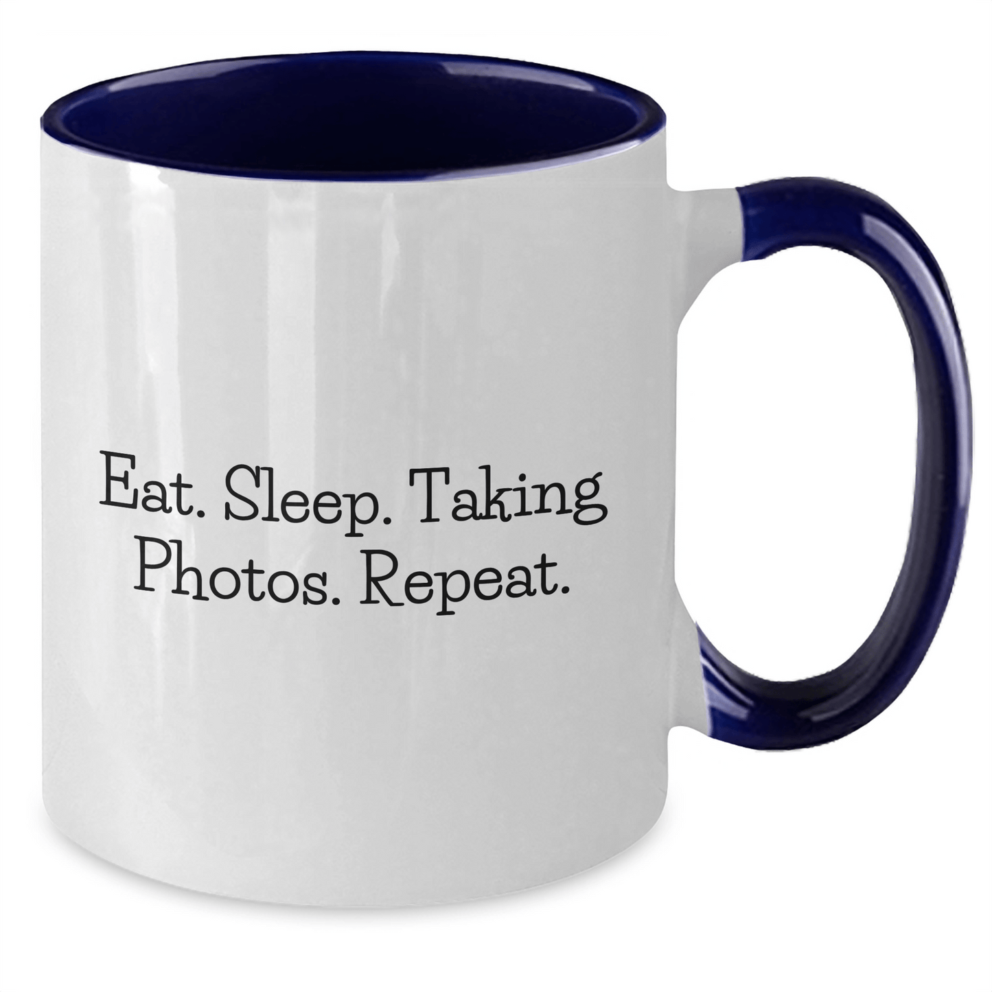 Are you a taking photos enthusiast or looking for a unique gift for the dad who loves capturing moments? Look no further! This funny coffee mug is perfect for taking photos enthusiasts and makes a great gift for Father's Day. The quote 'Eat. Sleep. Taking Photos. Repeat.' is sure to bring a smile to anyone's face. Made from ceramic, this two-tone mug is sturdy and easy to clean. Whether you're a morning coffee lover or an afternoon tea enthusiast, this mug is the perfect companion for your daily routine. It's also a great way to show off your love for taking photos. Give this mug as a gift to your dad or a taking photos enthusiast in your life and make their day a little brighter.