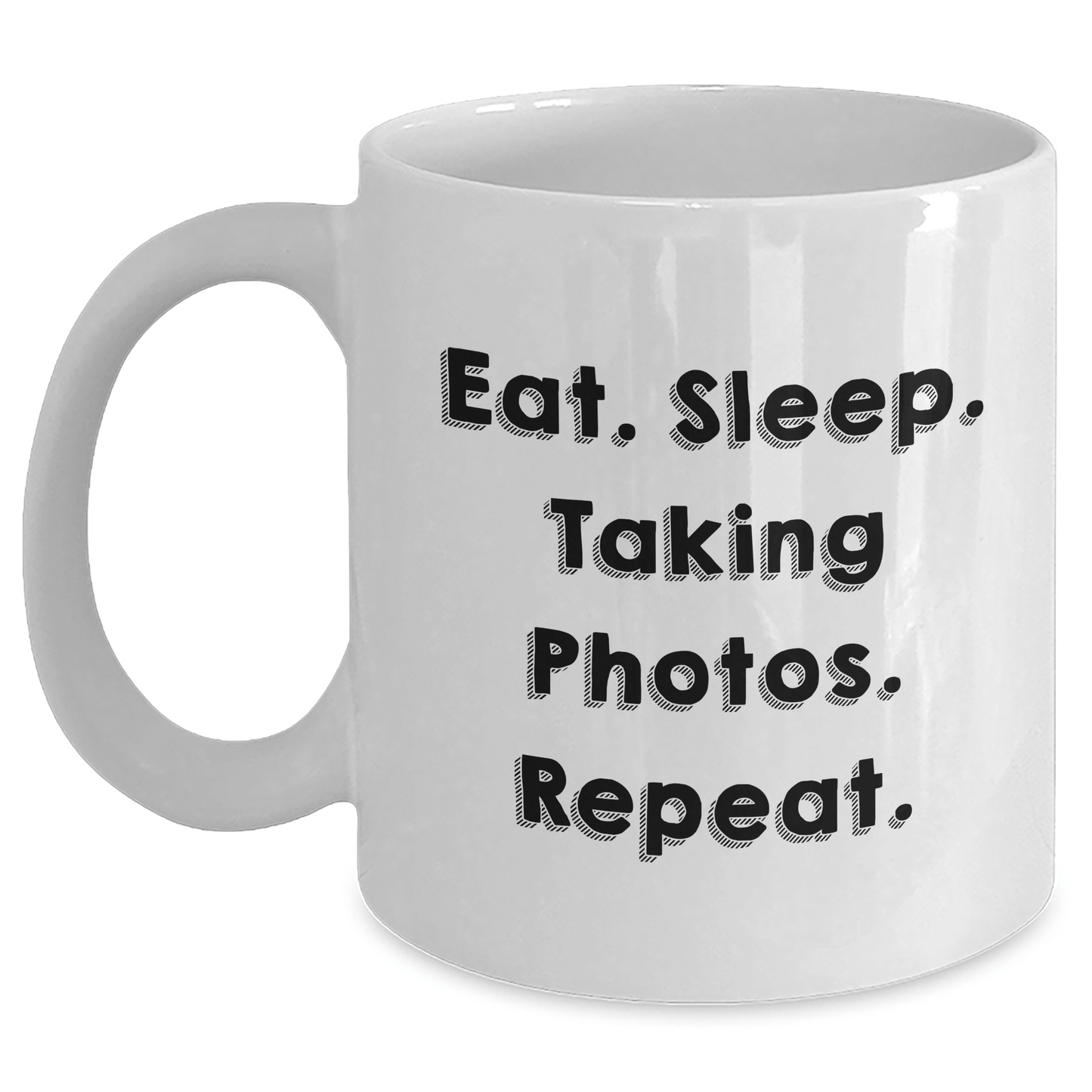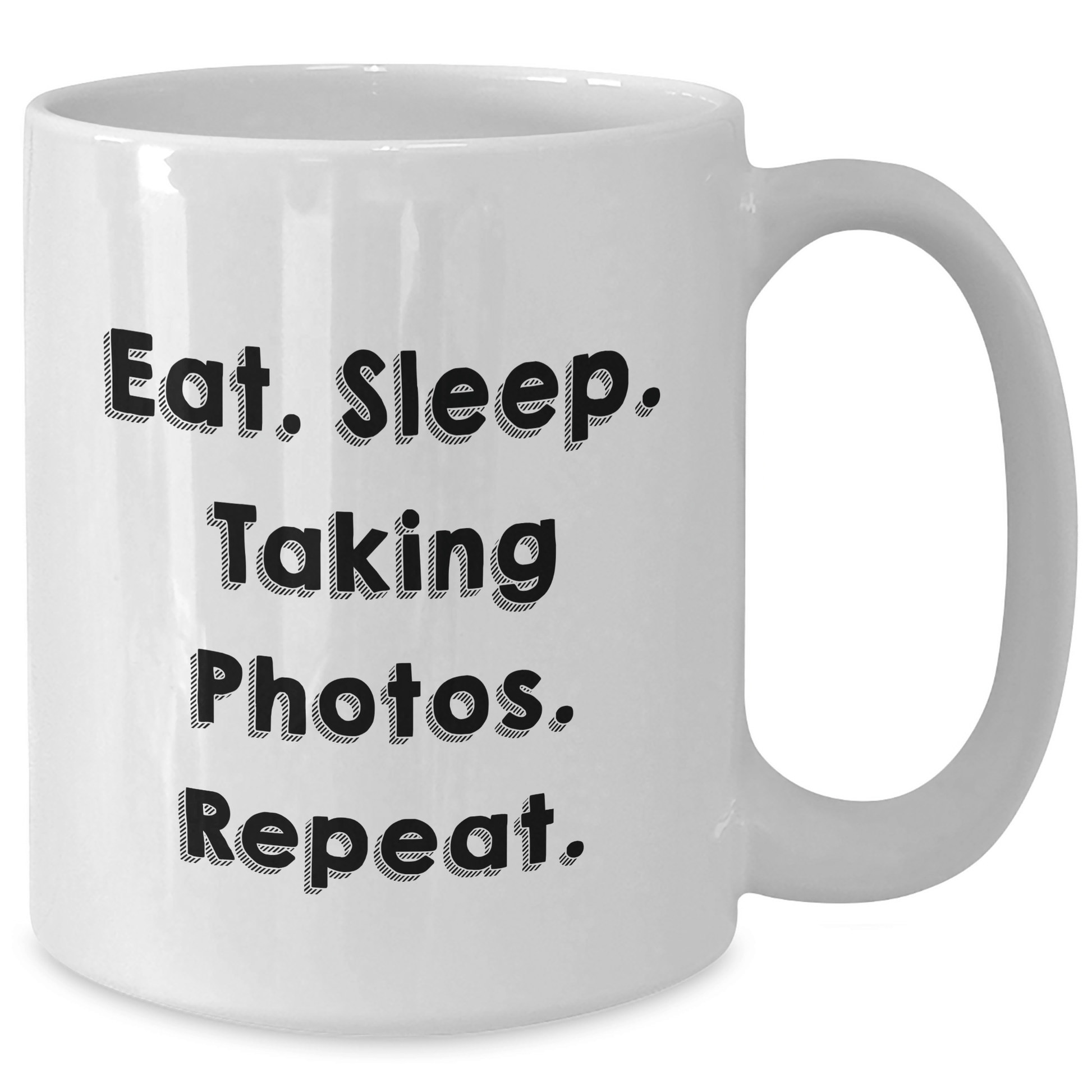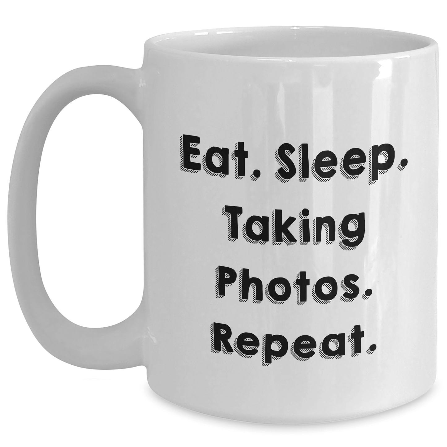Are you a photography enthusiast or looking for a unique gift for a Taking Photos lover? Look no further! Our white coffee mug is the perfect way to show your love for Taking Photos. With its funny quote 'Eat. Sleep. Taking Photos. Repeat.' and high-quality ceramic material, this mug is sure to bring a smile to anyone's face. Whether you're sending it as a gift to your dad on Father's Day or to a friend who shares your passion for Taking Photos, this mug is the perfect way to show your appreciation.