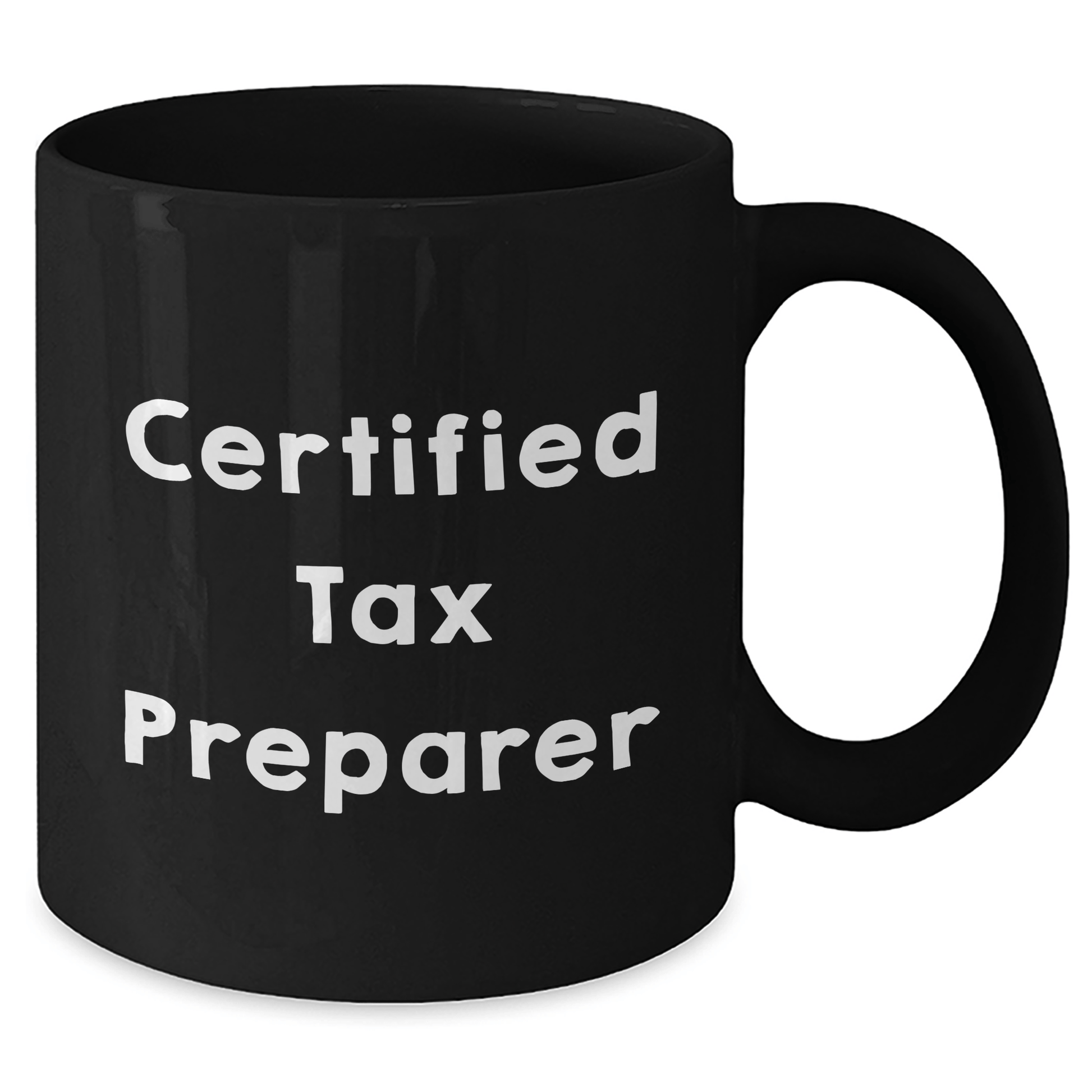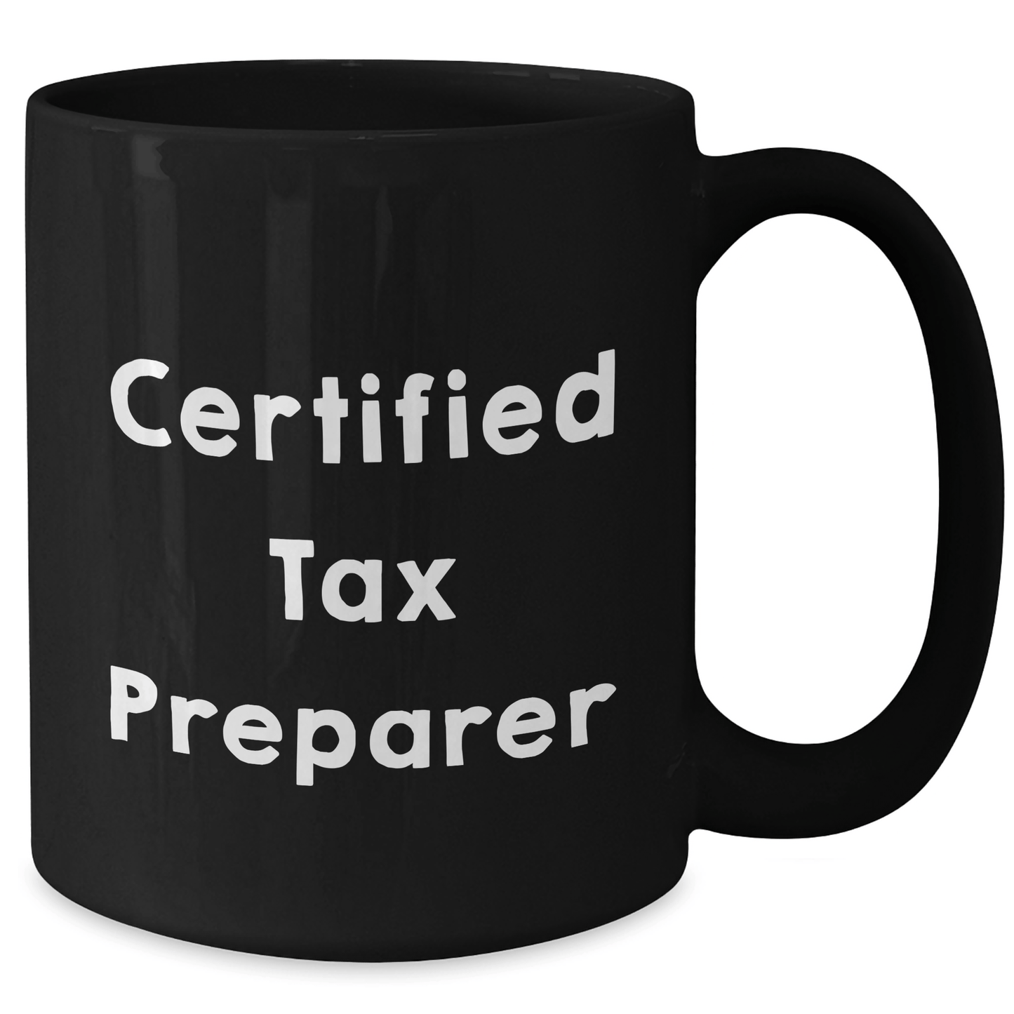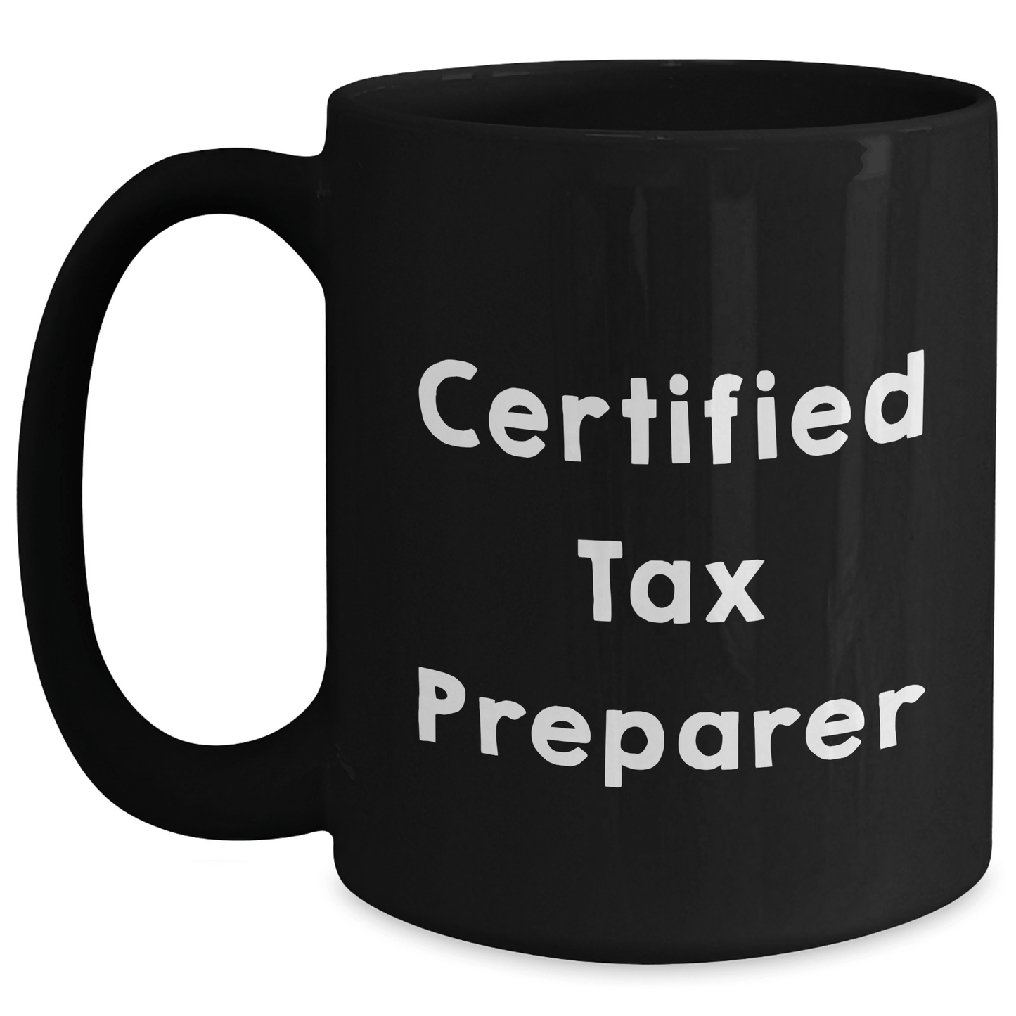 - Show your appreciation for the 'Certified Tax Preparer' in your life with this thoughtful Black Coffee Mug, perfect for Mother's Day. The ceramic mug is available in black with a capacity of 11oz or 15oz, making it a great size for daily use. With its microwave and dishwasher safe design, it's easy to clean and maintain. Ideal for the busy tax professional who deserves a little relaxation and appreciation.