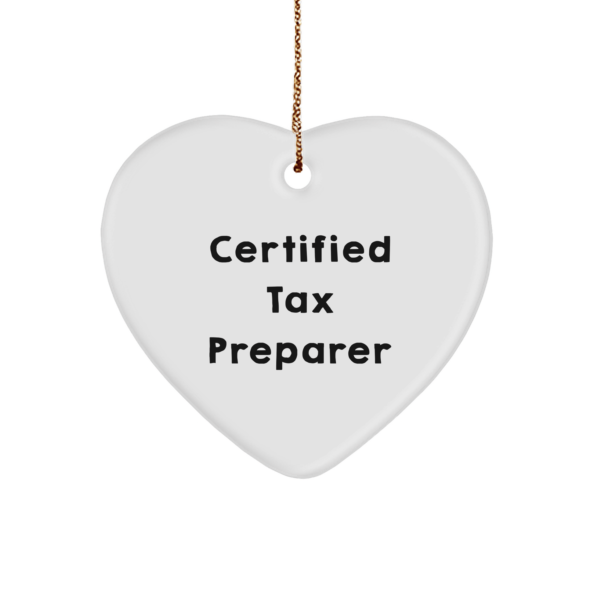 - This heart-shaped ornament is the perfect way to add some humor to your Tax Preparer's holiday season, featuring a funny quote that's sure to bring a smile to their face.