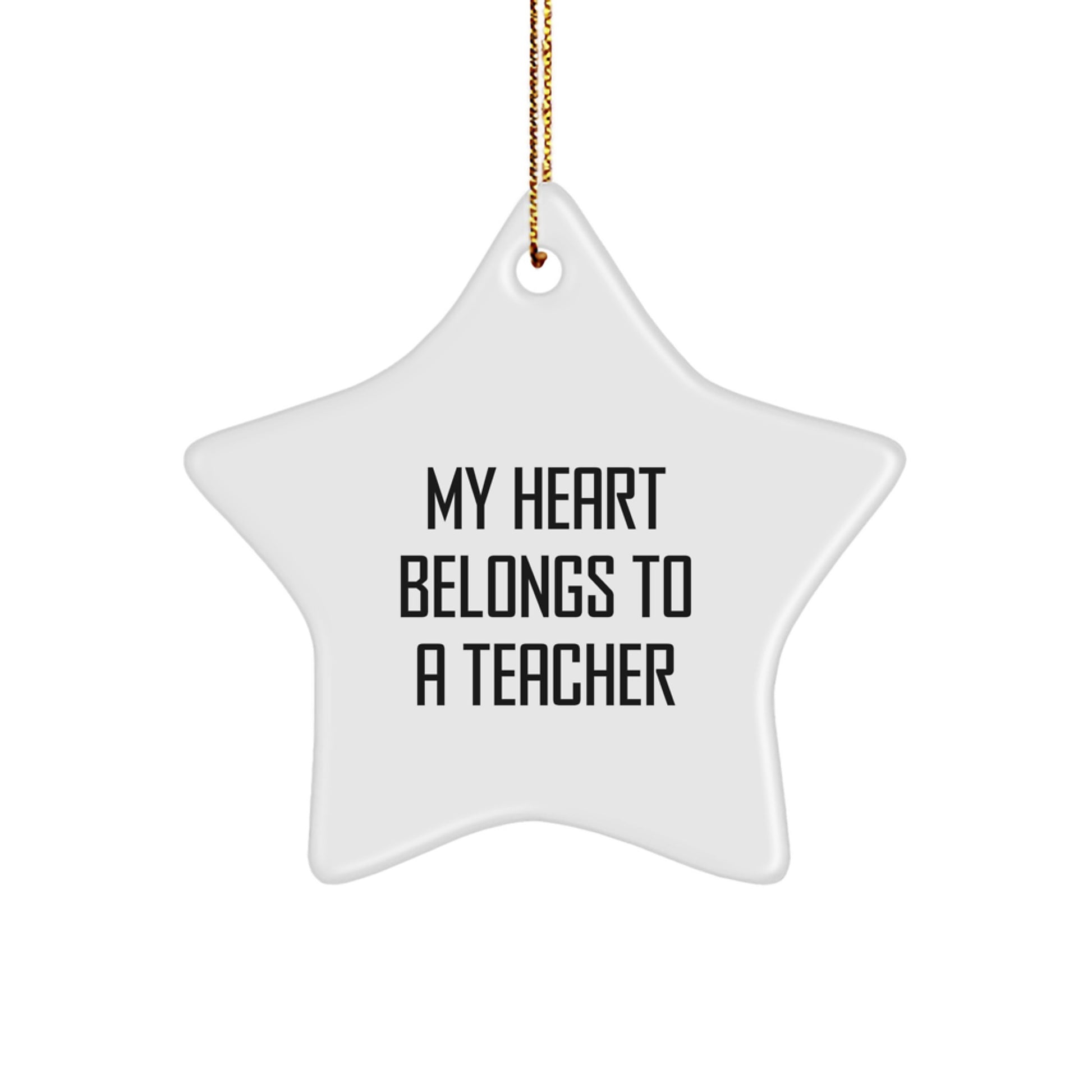 Are you searching for a unique and funny gift for your favorite teacher? Look no further! This 'My Heart Belongs To A Teacher' Star Ornament is the perfect way to show your appreciation for all they do. Made from sturdy MDF with a high-gloss plastic finish, this ornament is lightweight and resistant to breaking, making it a great choice for households with children or pets. The vibrant colors and star shape will add a touch of magic to your Christmas tree or decorative space.