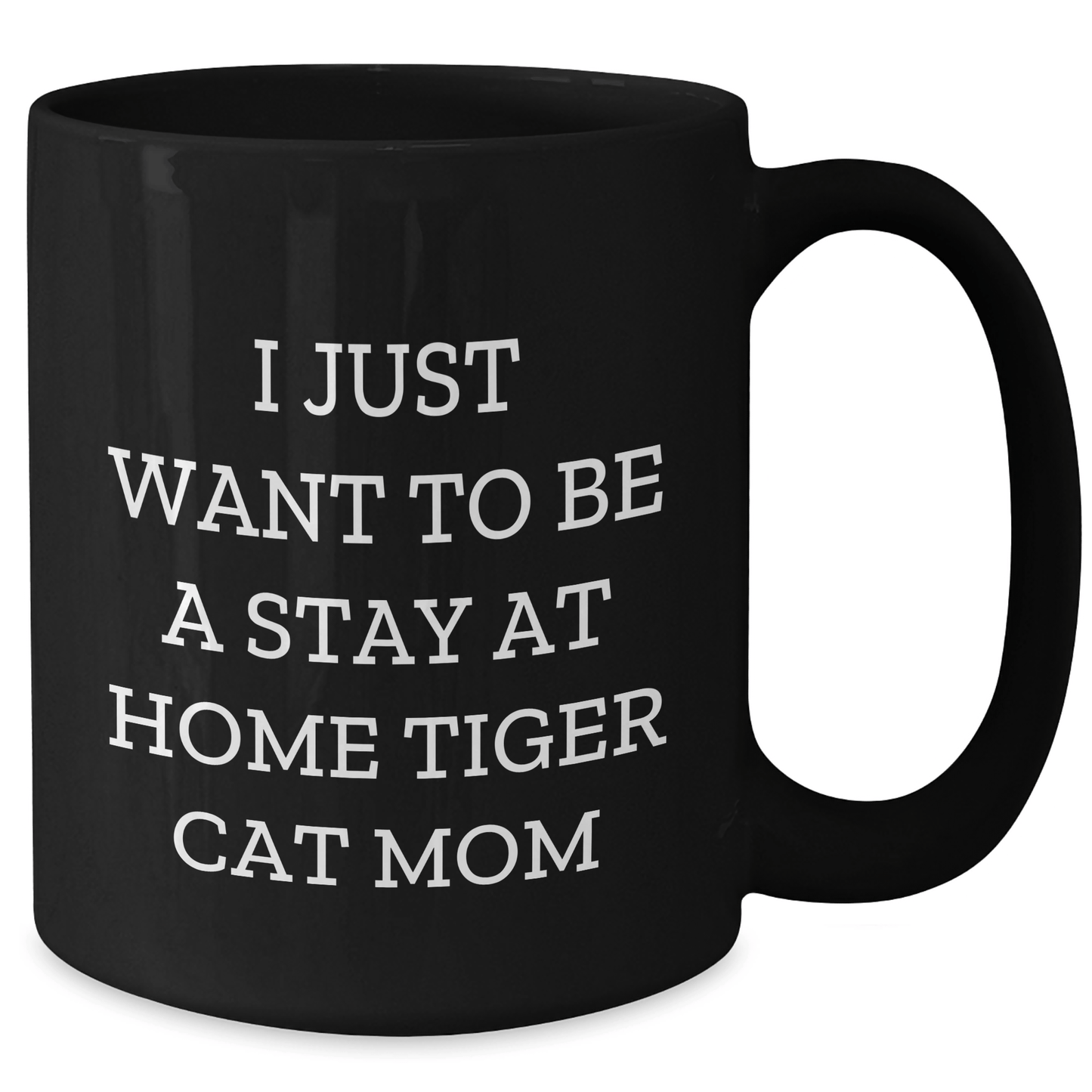 - Bring a touch of fierce feline charm to Dad's daily coffee routine with this 'I Just Want To Be A Stay At Home Tiger Cat Mom' black coffee mug, perfect for Father's Day. The ceramic design is both microwave and dishwasher safe, making it easy to clean and reuse. It's a unique gift that's sure to delight any tiger cat lover.