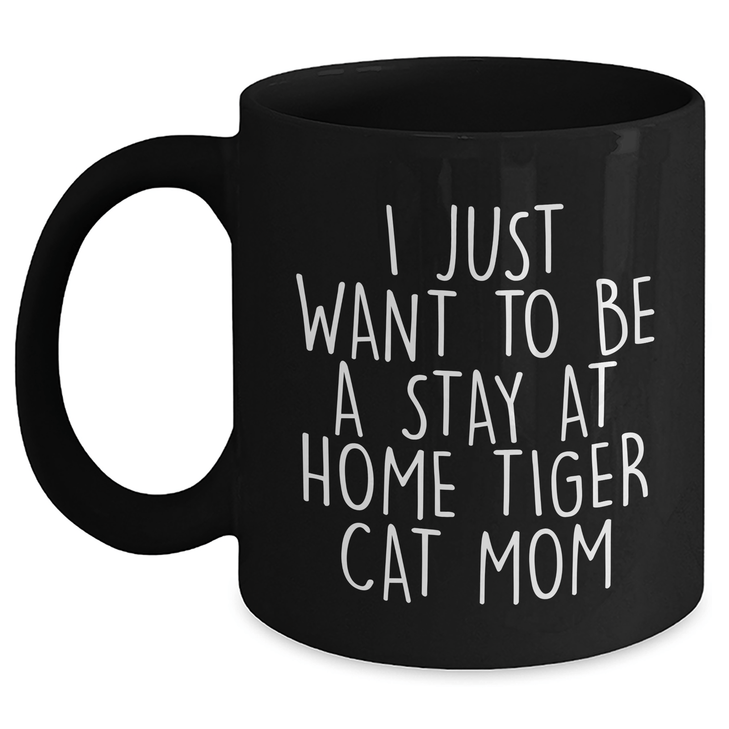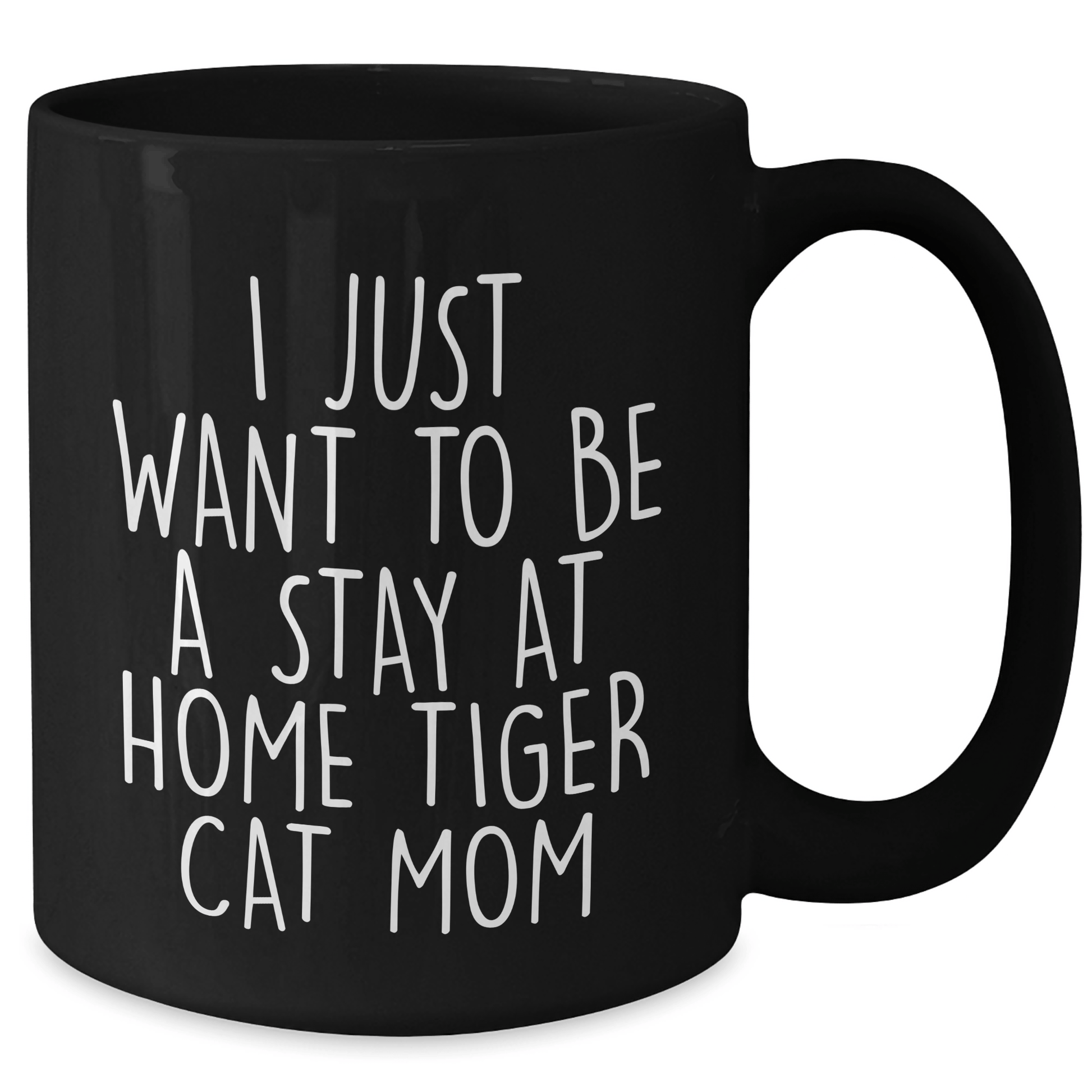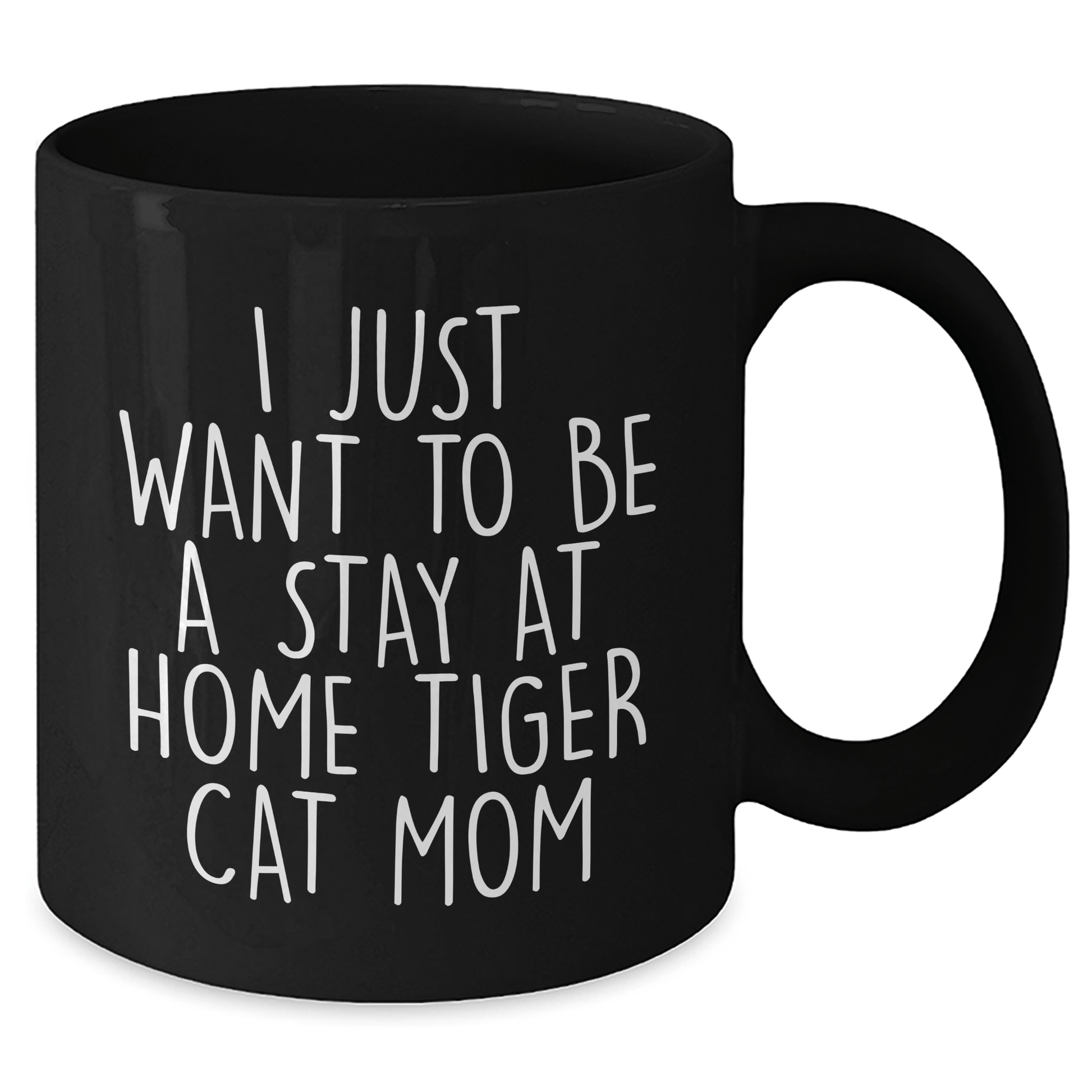 Funny Tiger Cat Mom Gifts for Him - I Just Want To Be A Stay At Home Tiger Cat Mom Black Coffee Mug, Microwave and Dishwasher Safe, Father's Day Unique Gifts from Men to Family
