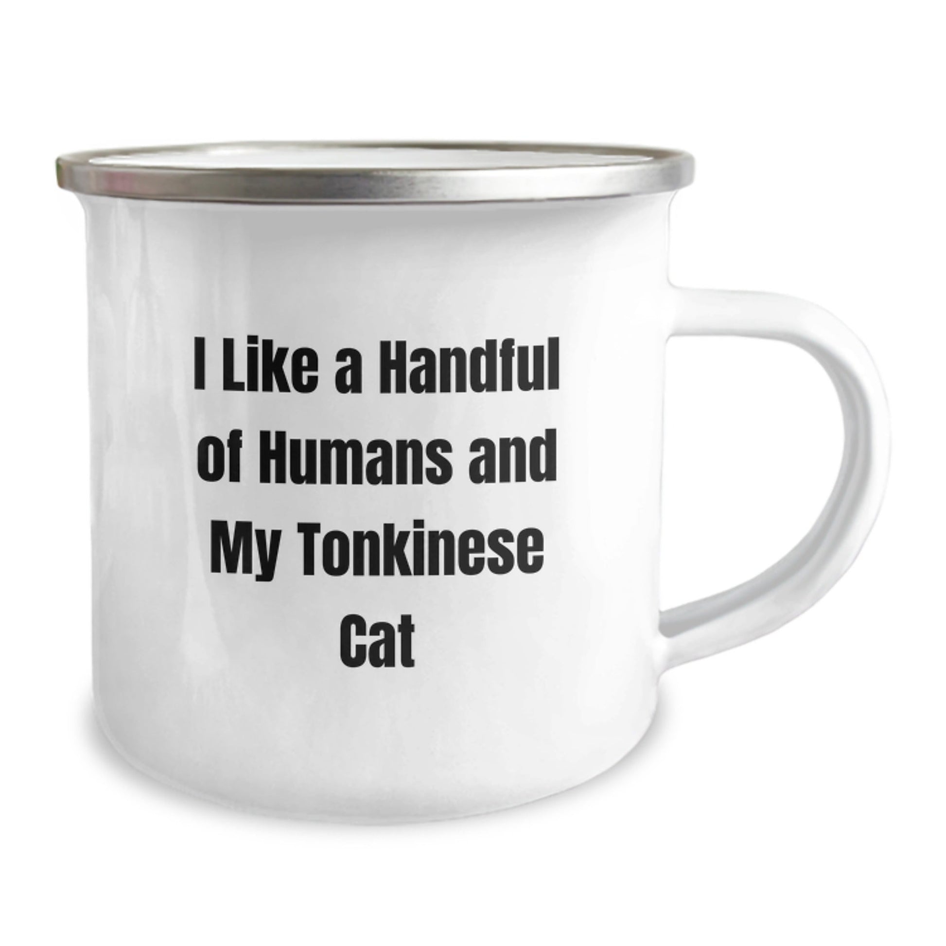 Are you a Tonkinese Cat enthusiast or looking for a unique gift for the cat lover in your life? This Camping Mug is the perfect present for any occasion, including graduation! With its cute and funny quote, 'I Like A Handful Of Humans And My Tonkinese Cat', it's sure to bring a smile to anyone's face.