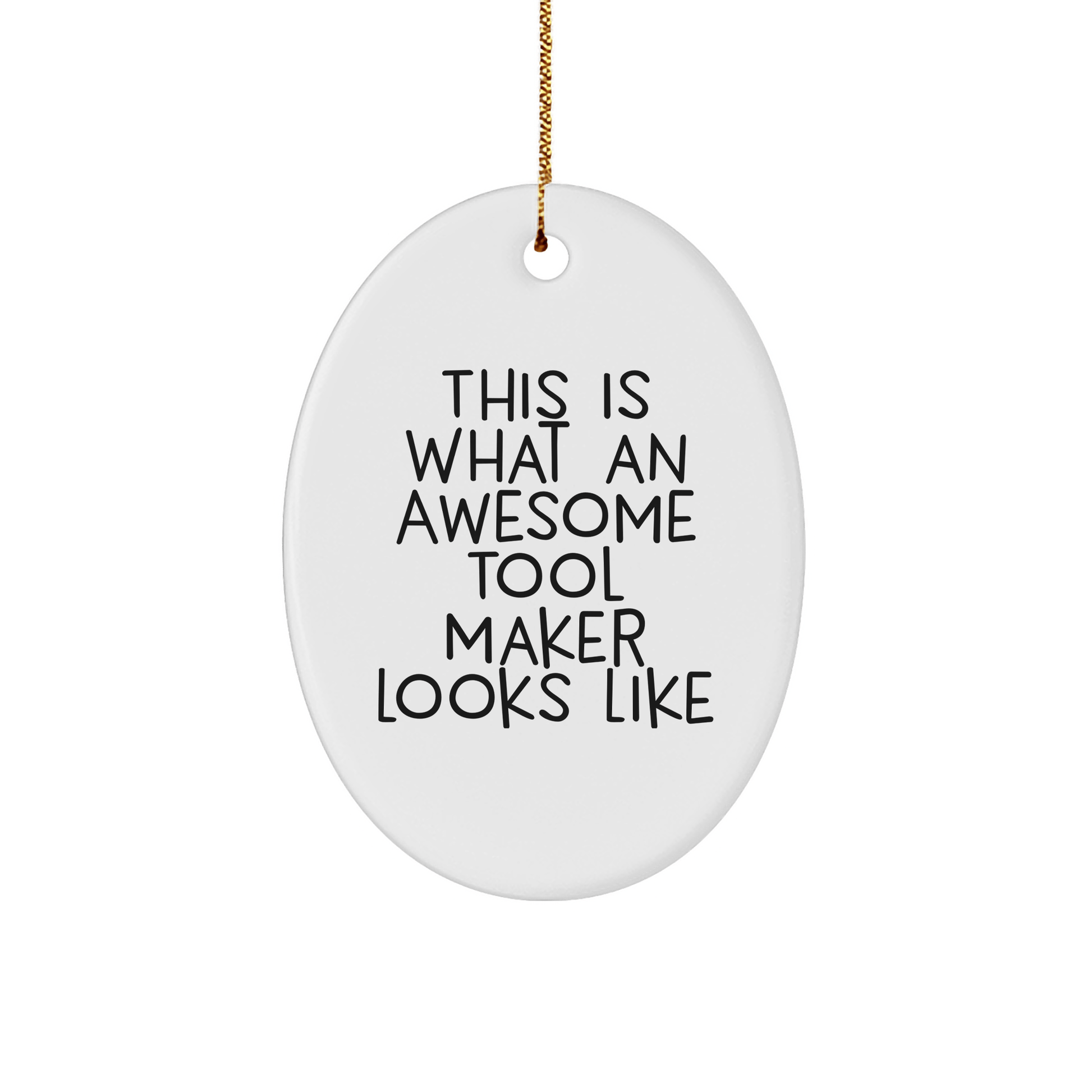 Are you a Tool Maker enthusiast or looking for a unique gift for the one who loves making tools? Look no further! This 'This Is What An Awesome Tool Maker Looks Like' Oval Ornament is the perfect addition to any Tool Maker's collection. Crafted from sturdy MDF with a high-gloss plastic finish, this ornament is vibrantly printed from edge-to-edge via Sublimation, ensuring bright, vivid colors. Lightweight and resistant to breaking, it's a great choice for households with children or pets. Ships with a festive gold cord for easy hanging, perfect for stress-free decorating. Give the gift of laughter and joy to your favorite Tool Maker this Christmas.
