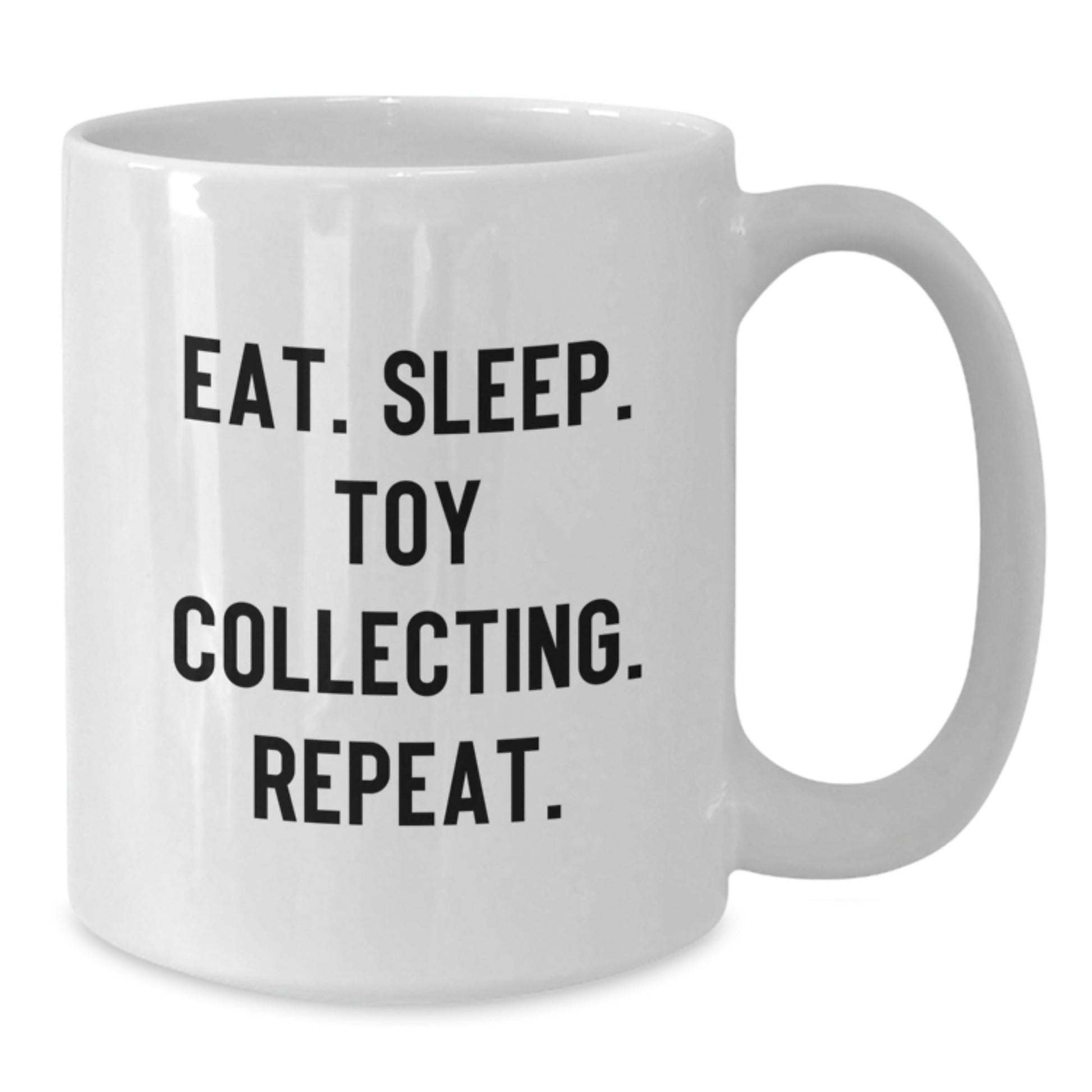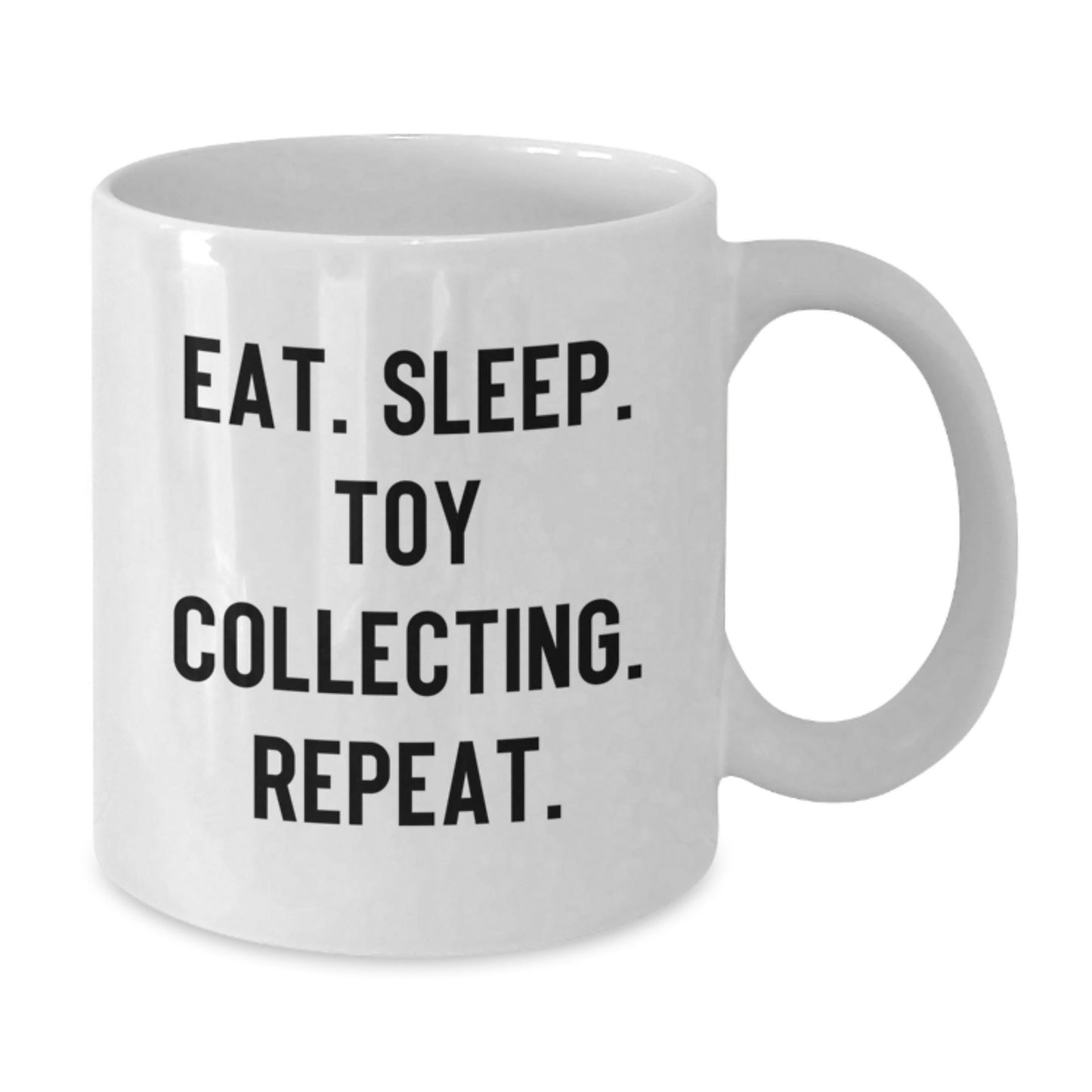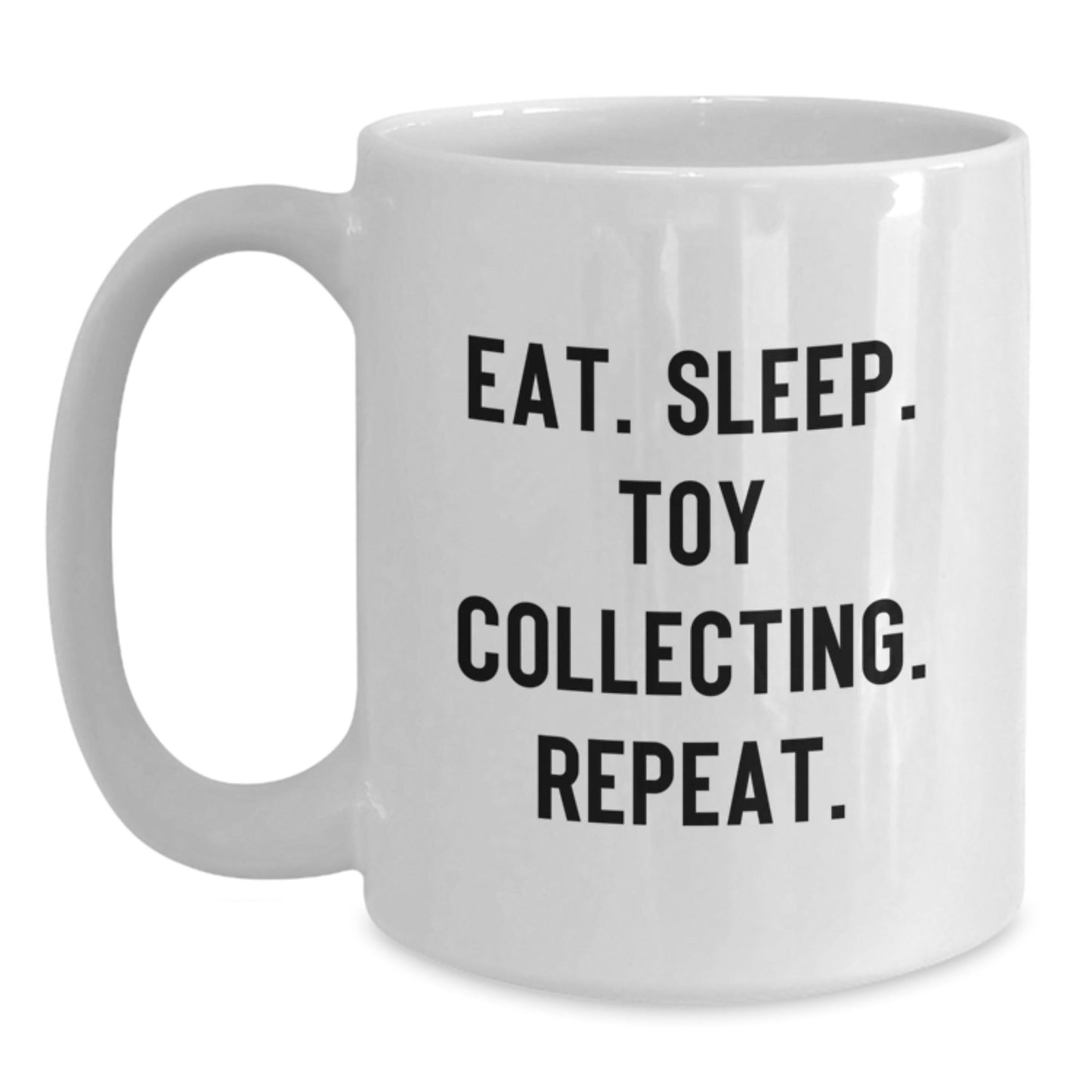 This unique gift is perfect for men, women, friends, or coworkers who share your passion for toy collecting. It's a thoughtful way to show your appreciation and dedication to your hobby. So why wait? Get your 'Eat. Sleep. Toy Collecting. Repeat.' white coffee mug today and start your day off right with a cup of coffee and a smile!