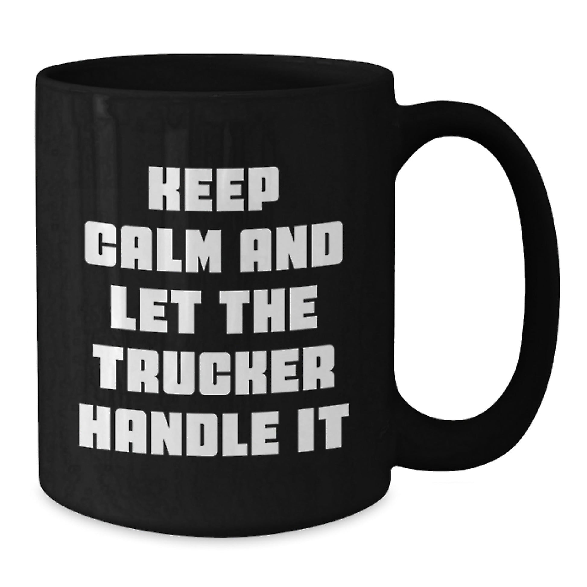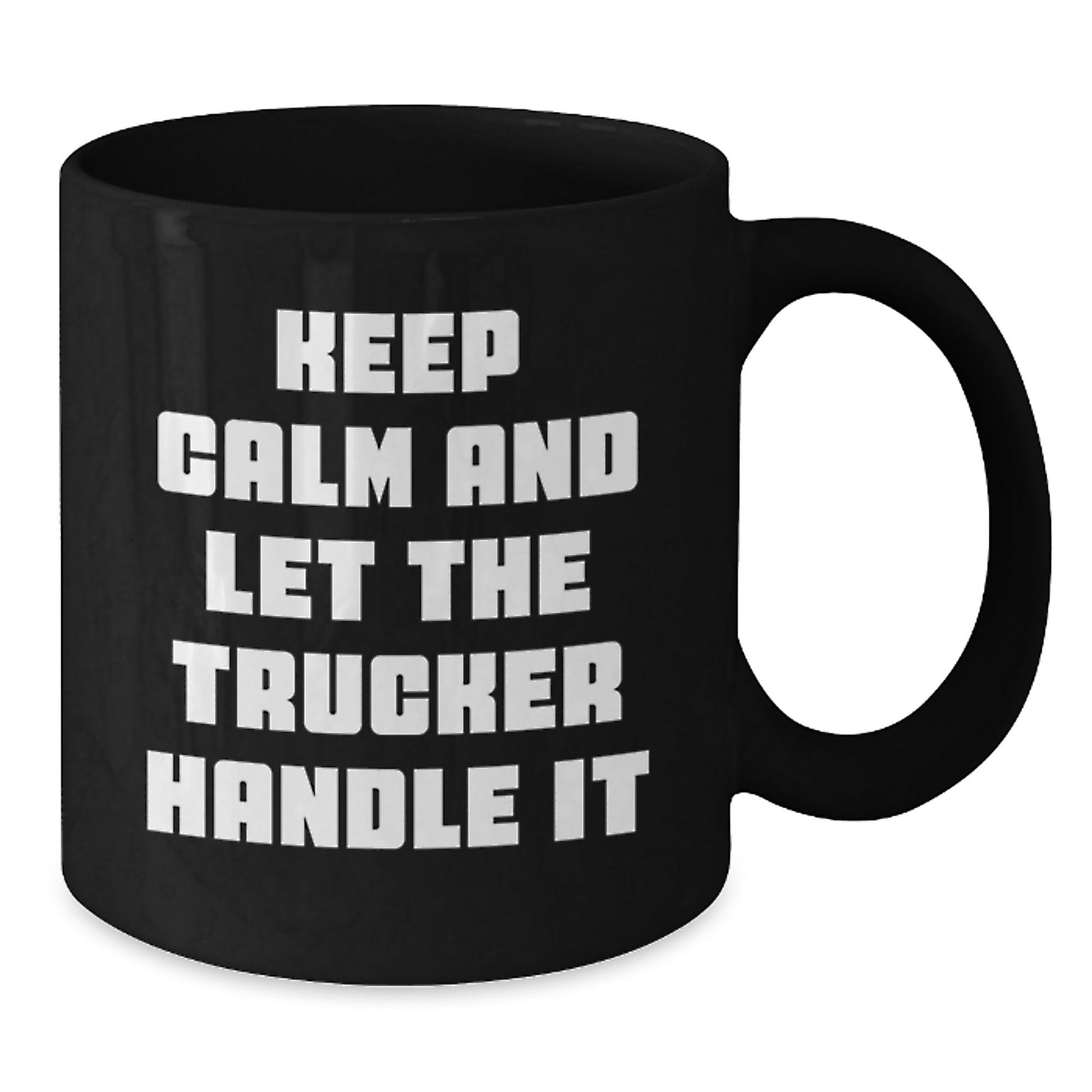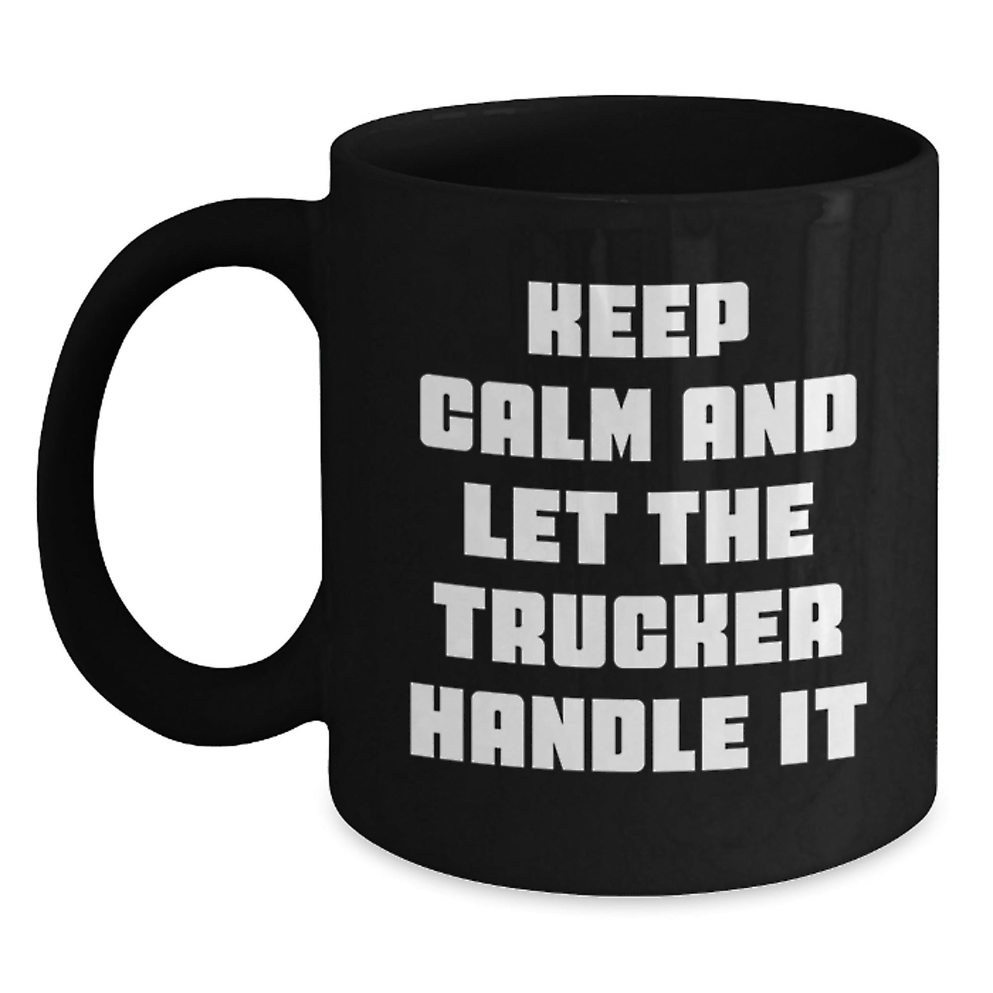 Are you looking for a unique gift for the trucker in your life? Look no further! Our funny black coffee mug is the perfect way to show your appreciation for their hard work and dedication. With the quote 'Keep Calm And Let The Trucker Handle It' printed in a bold, easy-to-read font, this mug is sure to bring a smile to their face. Whether it's a graduation gift or just a way to show your trucker friend you care, this mug is a thoughtful and practical gift. And with our ceramic mugs being microwave and dishwasher safe, they're easy to clean and use on-the-go. So why wait? Don't miss out and show your trucker friend that you're a true fan!