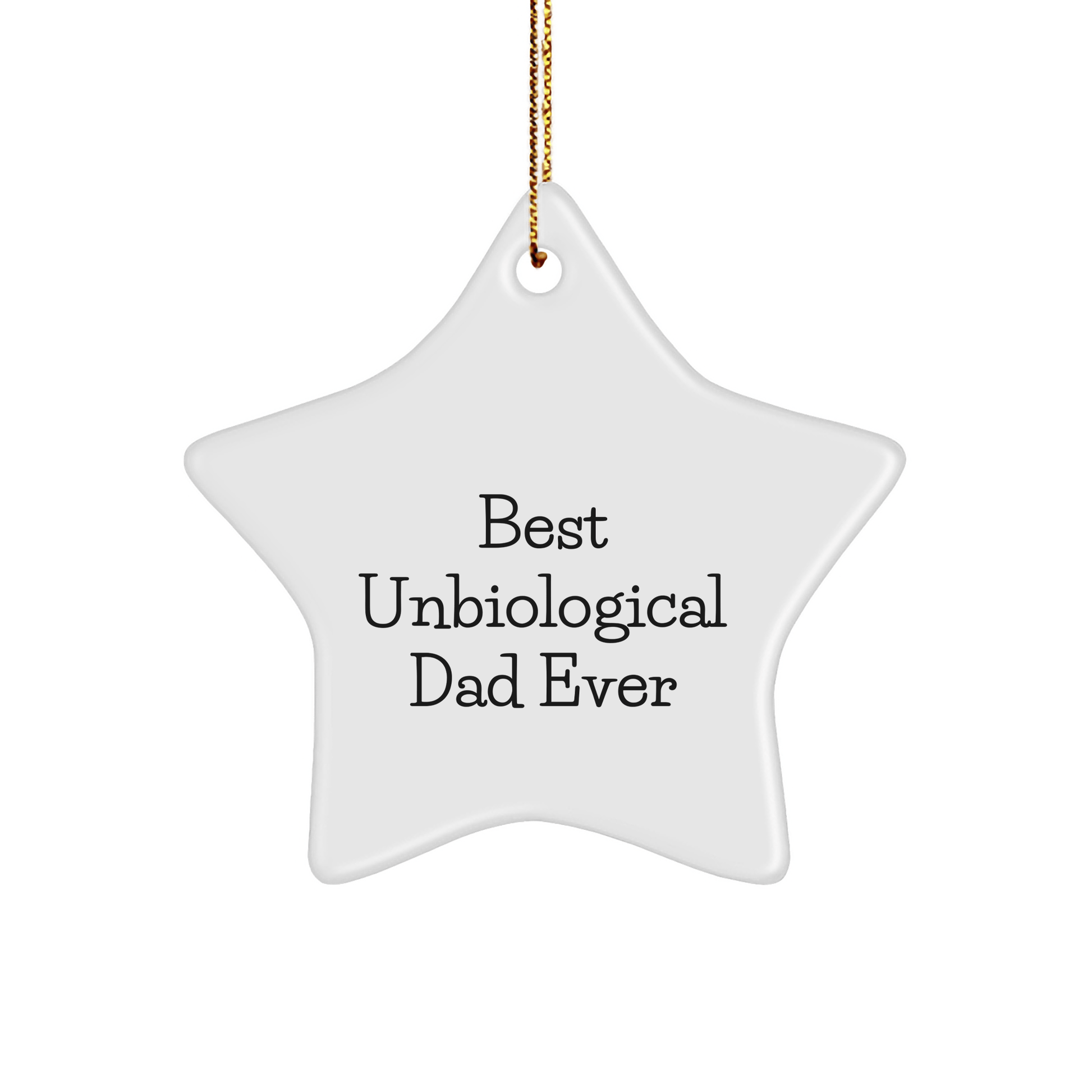 - This star ornament is a unique and funny gift for the best unbiological dad ever. The vibrant design is printed from edge-to-edge via sublimation, ensuring bright, vivid colors.