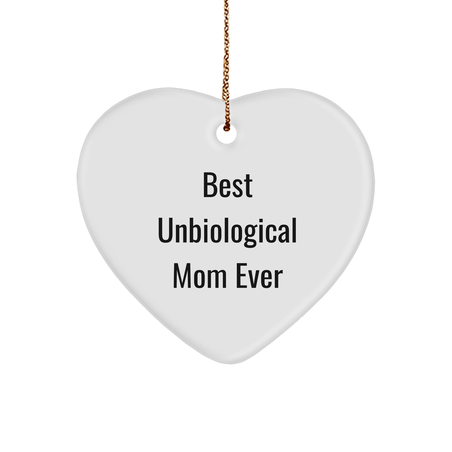 - This heart-shaped ornament is a unique and thoughtful gift for any Unbiological Mom. The quote 'Best Unbiological Mom Ever' is a great way to express your feelings and let her know how much you value her in your life.