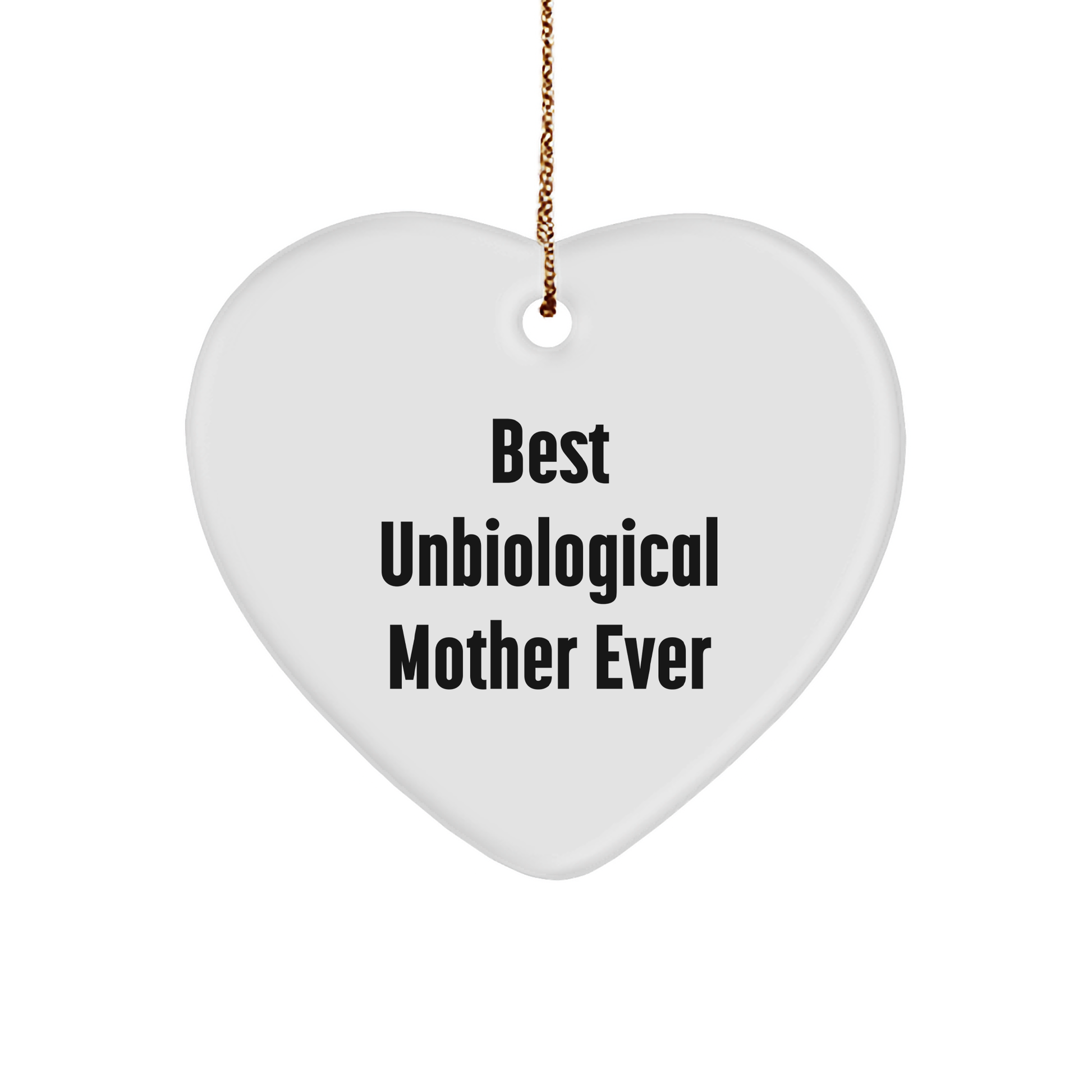Celebrate Unbiological Mother's love and care with this funny and heartwarming heart ornament! As a Best Unbiological Mother Ever, she deserves a gift that showcases her caring nature. This vibrant heart-shaped ornament is crafted from sturdy MDF and features a high-gloss plastic finish, ensuring long-lasting designs. The 'Best Unbiological Mother Ever' quote adds a playful touch, making it a thoughtful gift for any Unbiological Mother. Whether it's from family, friends, or coworkers, this gift is sure to bring a smile to her face.