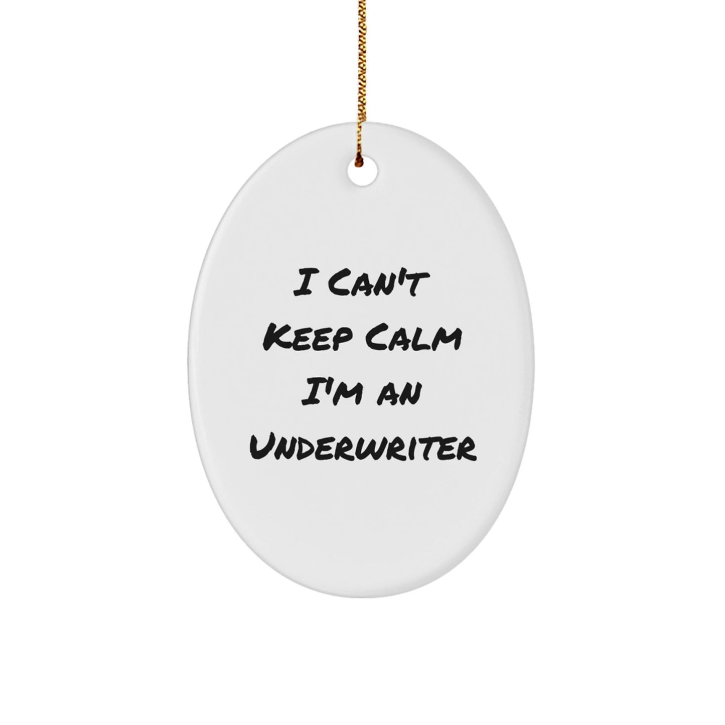 - Celebrate your underwriter pride with this unique and funny oval ornament, featuring the quote 'I Can't Keep Calm I'm An Underwriter'. It's the perfect addition to any home or office decor.
