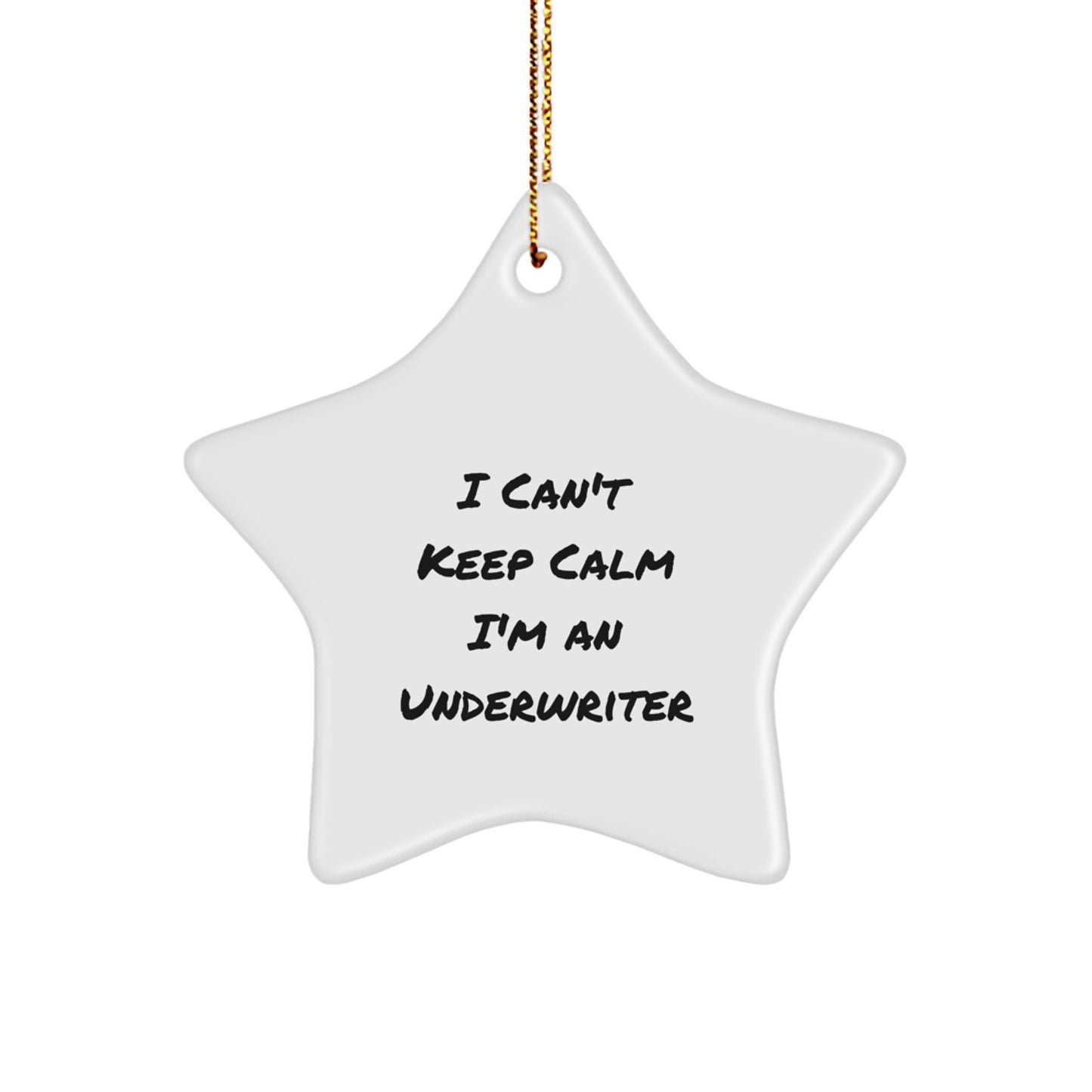 - Make someone's holiday season a little brighter with this hilarious 'I Can't Keep Calm I'm An Underwriter' Star Ornament, perfect for Underwriter enthusiasts and professionals alike