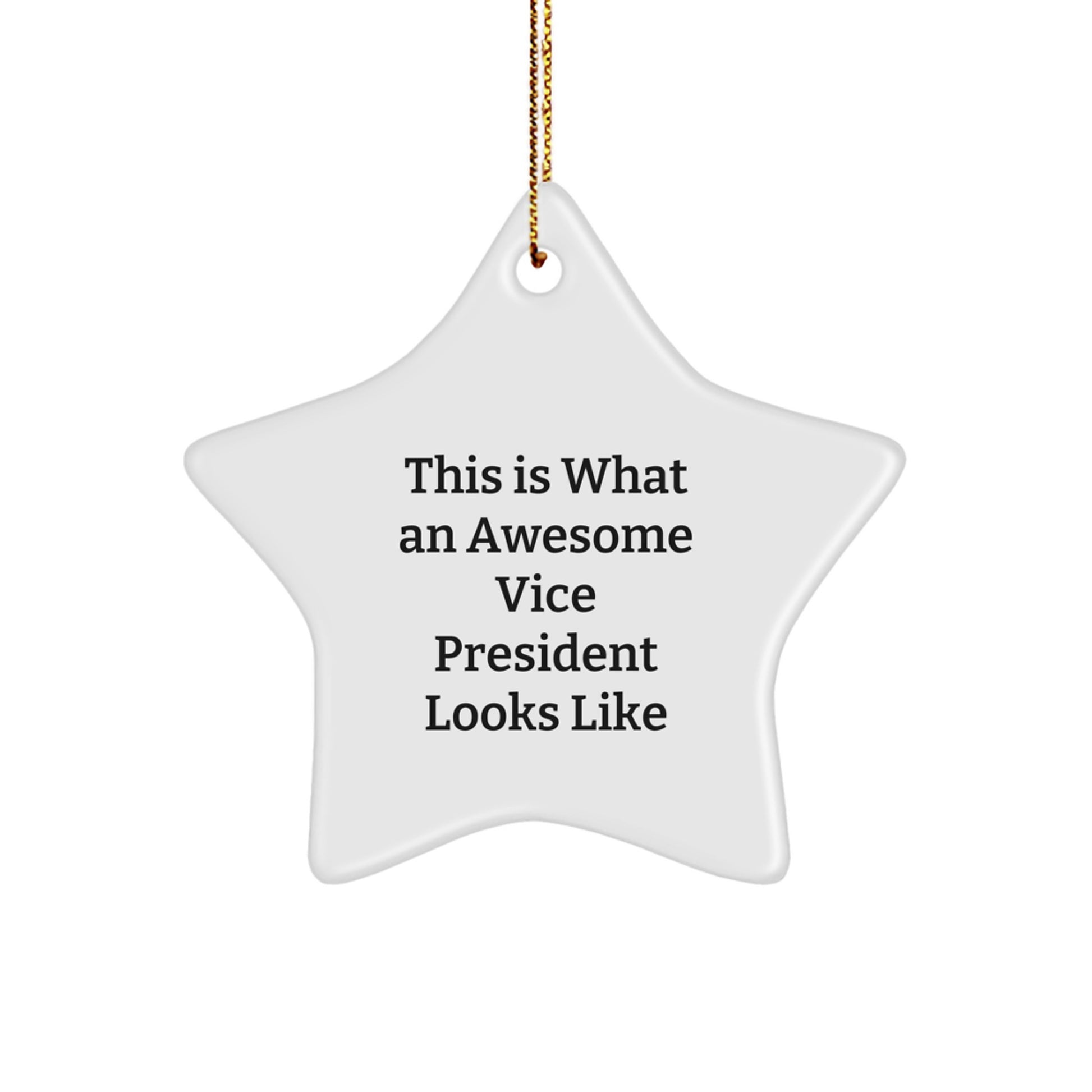 - This funny quote star ornament is the perfect way to show your appreciation for your Vice President's hard work and dedication. Made from sturdy MDF with a high-gloss plastic finish, it's vibrantly printed with the quote 'This Is What An Awesome Vice President Looks Like'.