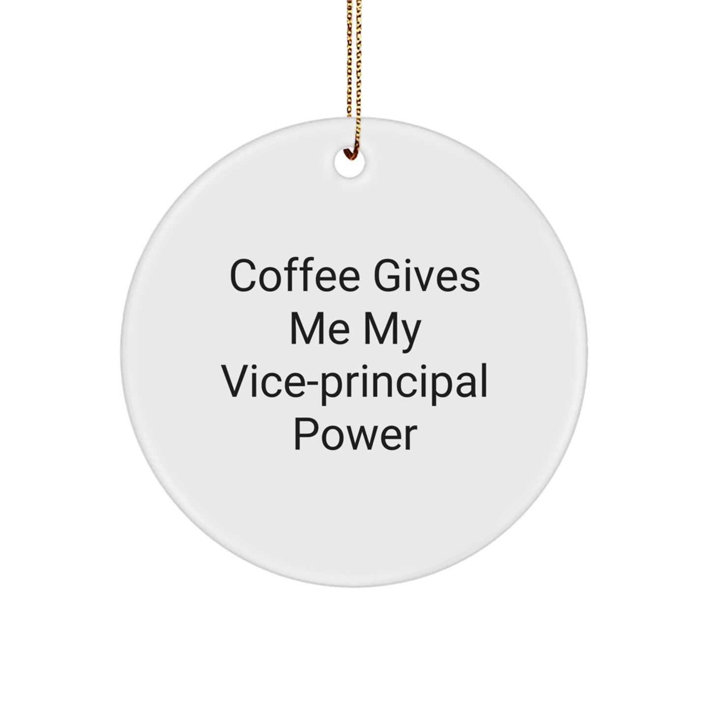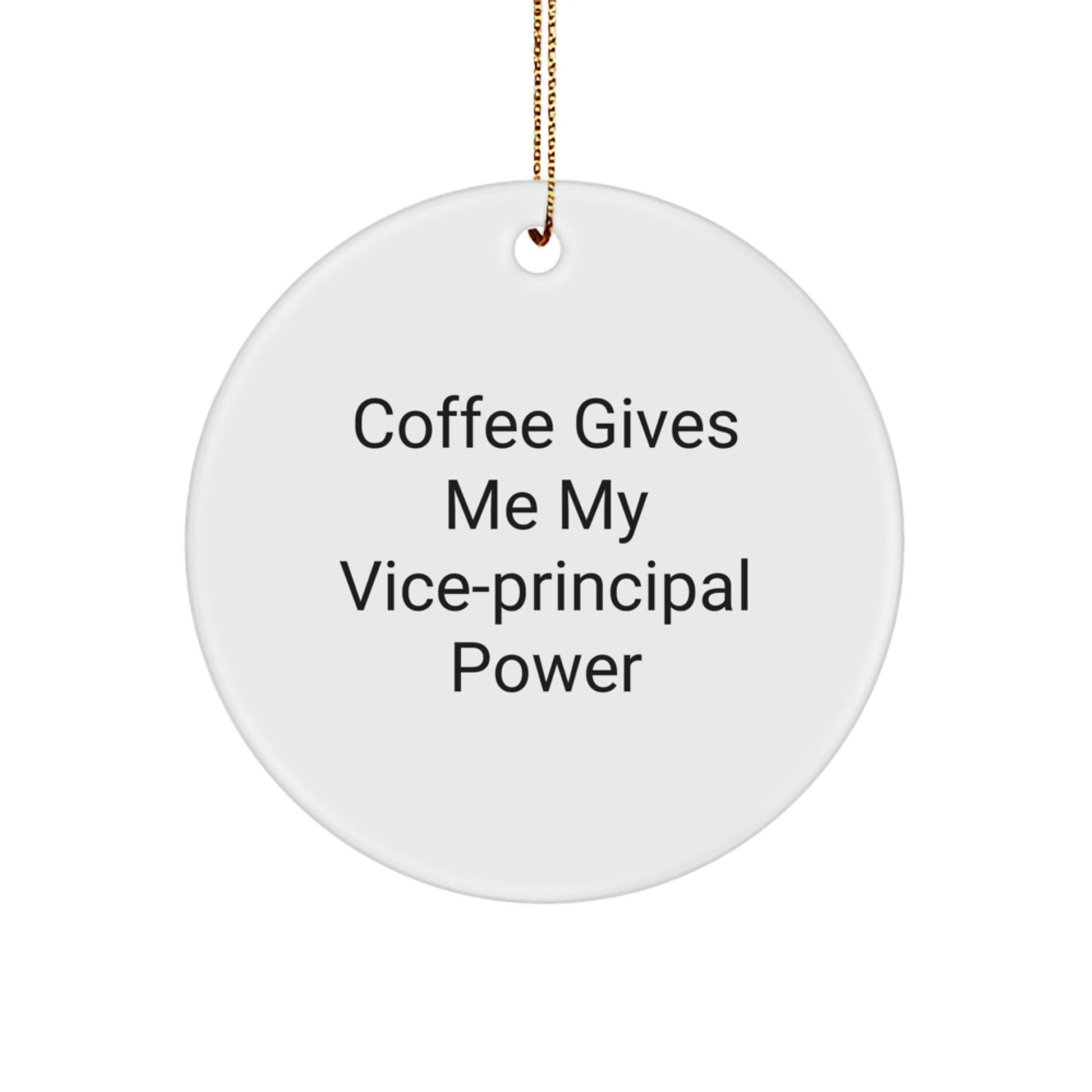 - Add some humor to your holiday decorating with this unique Circle Ornament, featuring the funny quote 'Coffee Gives Me My Vice-principal Power'. Perfect for the Vice-principal who loves a good cup of coffee!