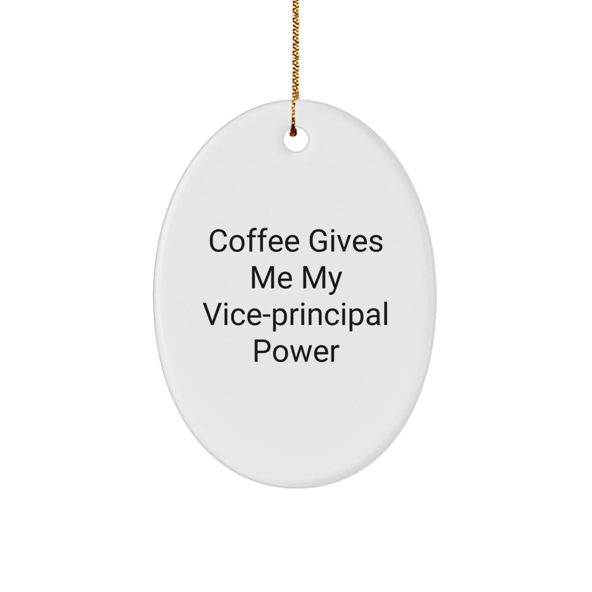 - The quote 'Coffee Gives Me My Vice-principal Power' is a humorous tribute to the power of coffee. Whether you're a vice-principal or just a coffee lover, this ornament is sure to bring a smile to your face.