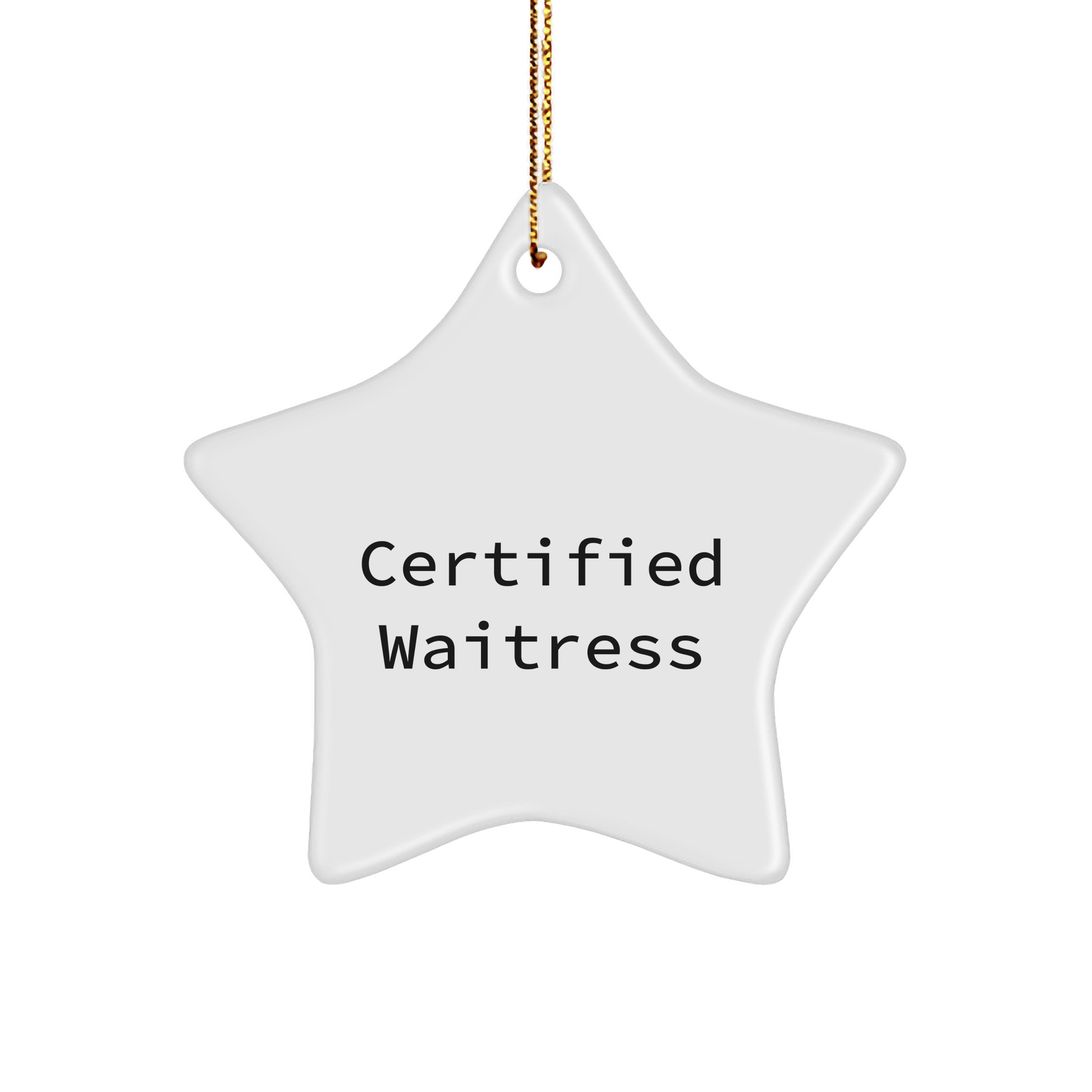 - Bring a smile to your favorite waitress's face with this hilarious and heartwarming Certified Waitress Star Ornament