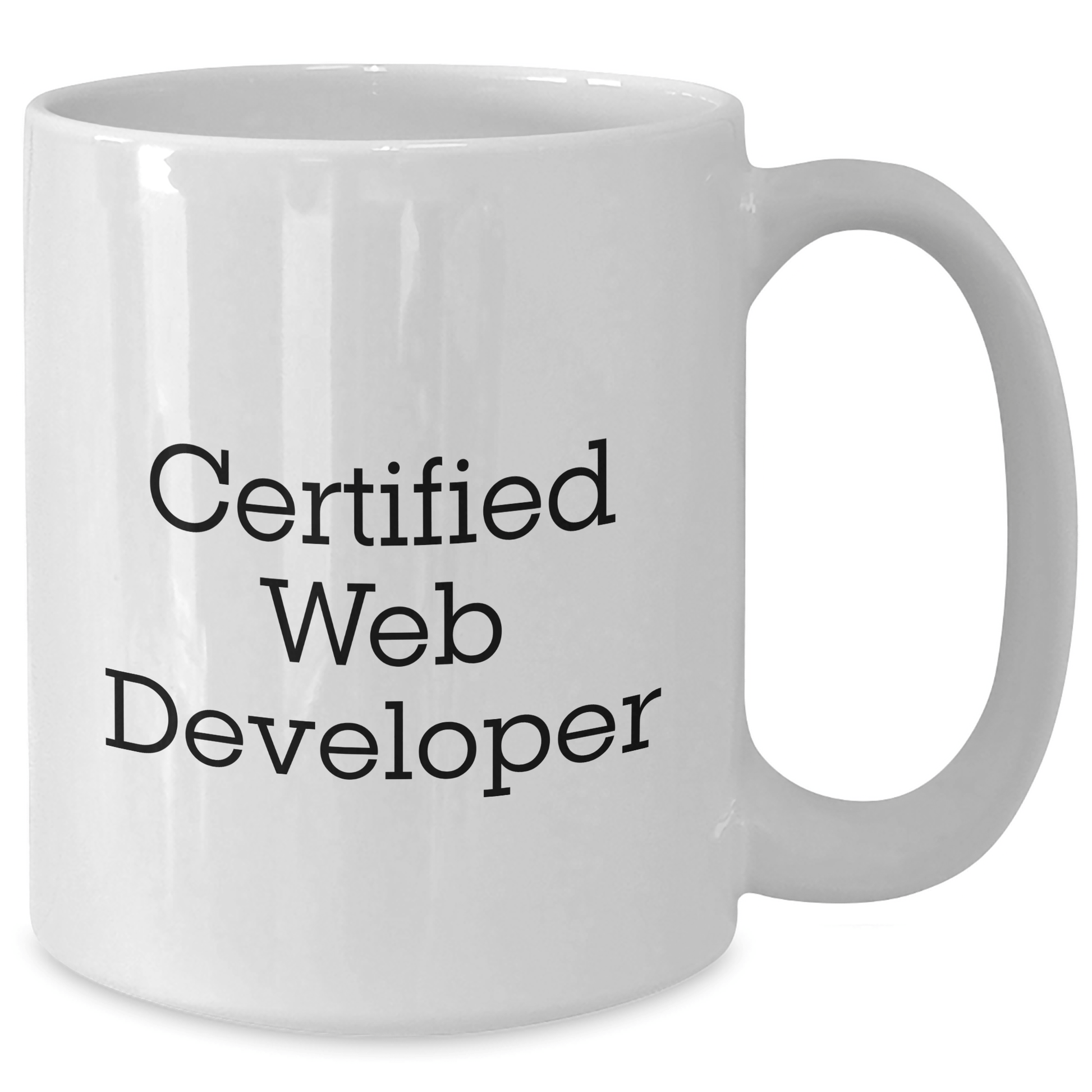 - 'Certified Web Developer' coffee mug is the ideal gift for the web developer in your life, a great way to show your appreciation for their hard work and dedication