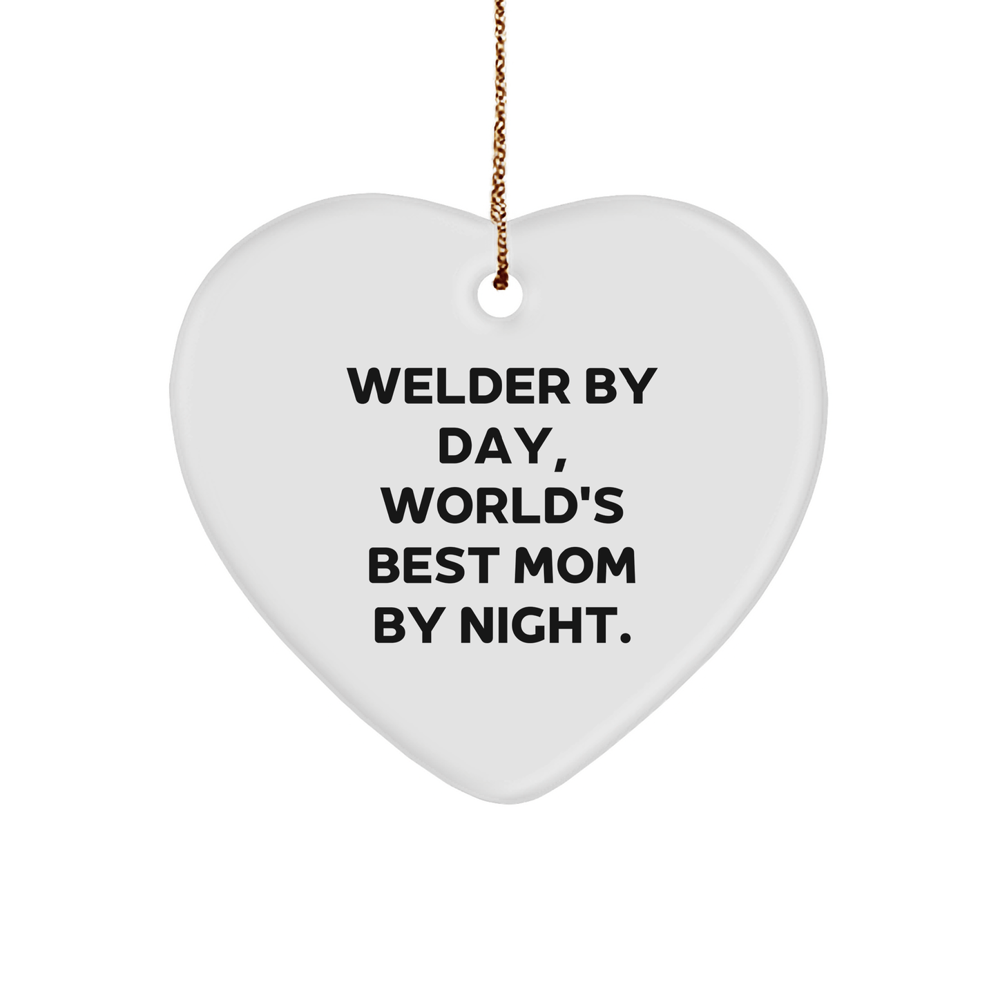 Are you a proud Welder or know someone who is? This heartwarming heart-shaped ornament is the perfect way to show off your love and appreciation. As a Welder by day, you're a master of your craft, but by night, you're a World's Best Mom or Dad, and this ornament celebrates that special bond.