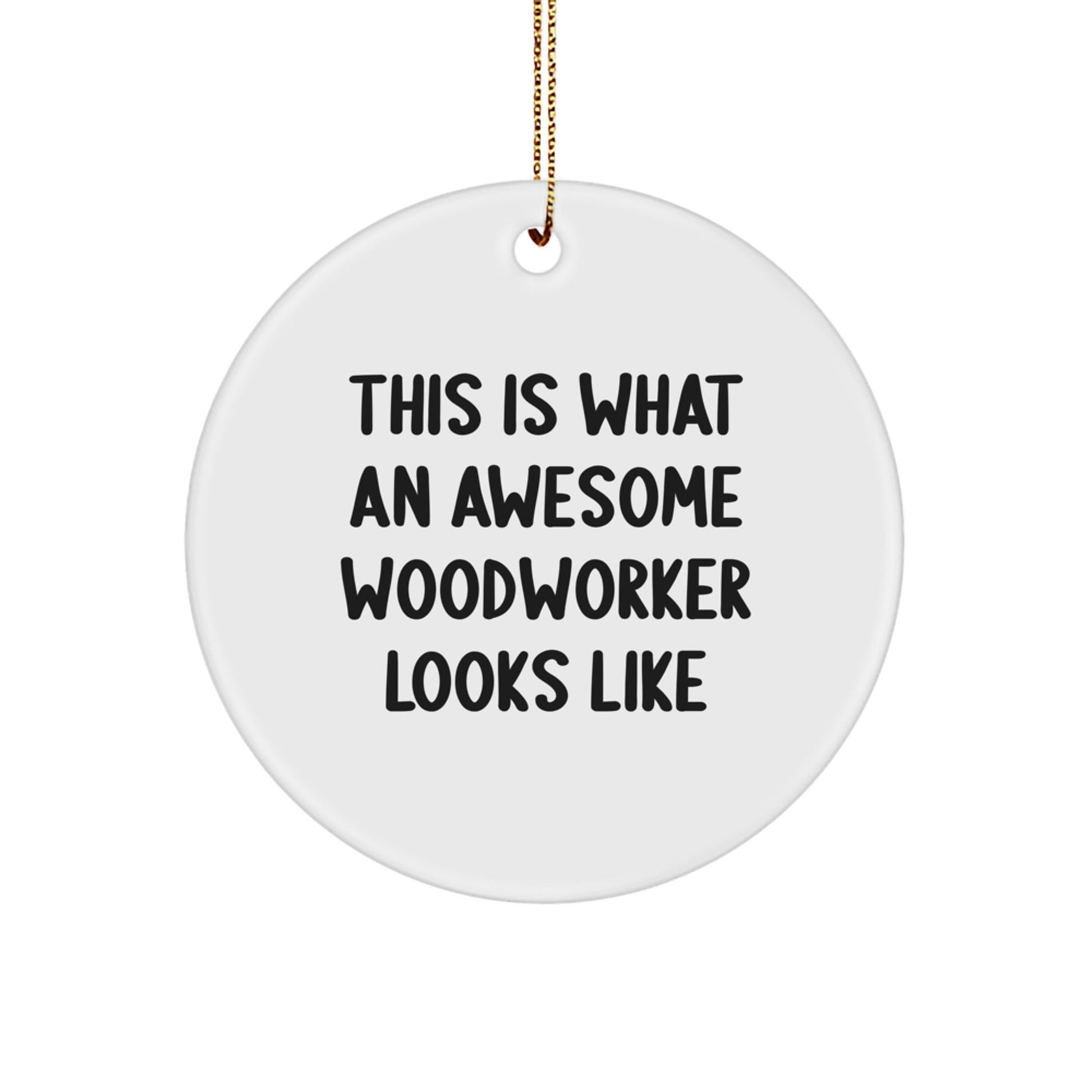 Are you looking for a unique and funny gift for the woodworker in your life? Look no further! Our 'This Is What An Awesome Woodworker Looks Like' Circle Ornament is the perfect addition to any woodworking enthusiast's home or workshop. Made from sturdy MDF with a high-gloss plastic finish, this ornament is vibrantly printed from edge-to-edge via Sublimation, ensuring bright, vivid colors that will stand out during the holiday season. The lightweight and resistant to breaking design makes it a great choice for households with children or pets. Ships with a festive gold cord for easy hanging, perfect for stress-free decorating. Give the gift of laughter and encouragement to your favorite woodworker with this hilarious quote. Whether you're shopping for a gift for a woodworker friend, family member, or coworker, this ornament is sure to bring a smile to their face. So go ahead and get creative with your gift-giving this holiday season!