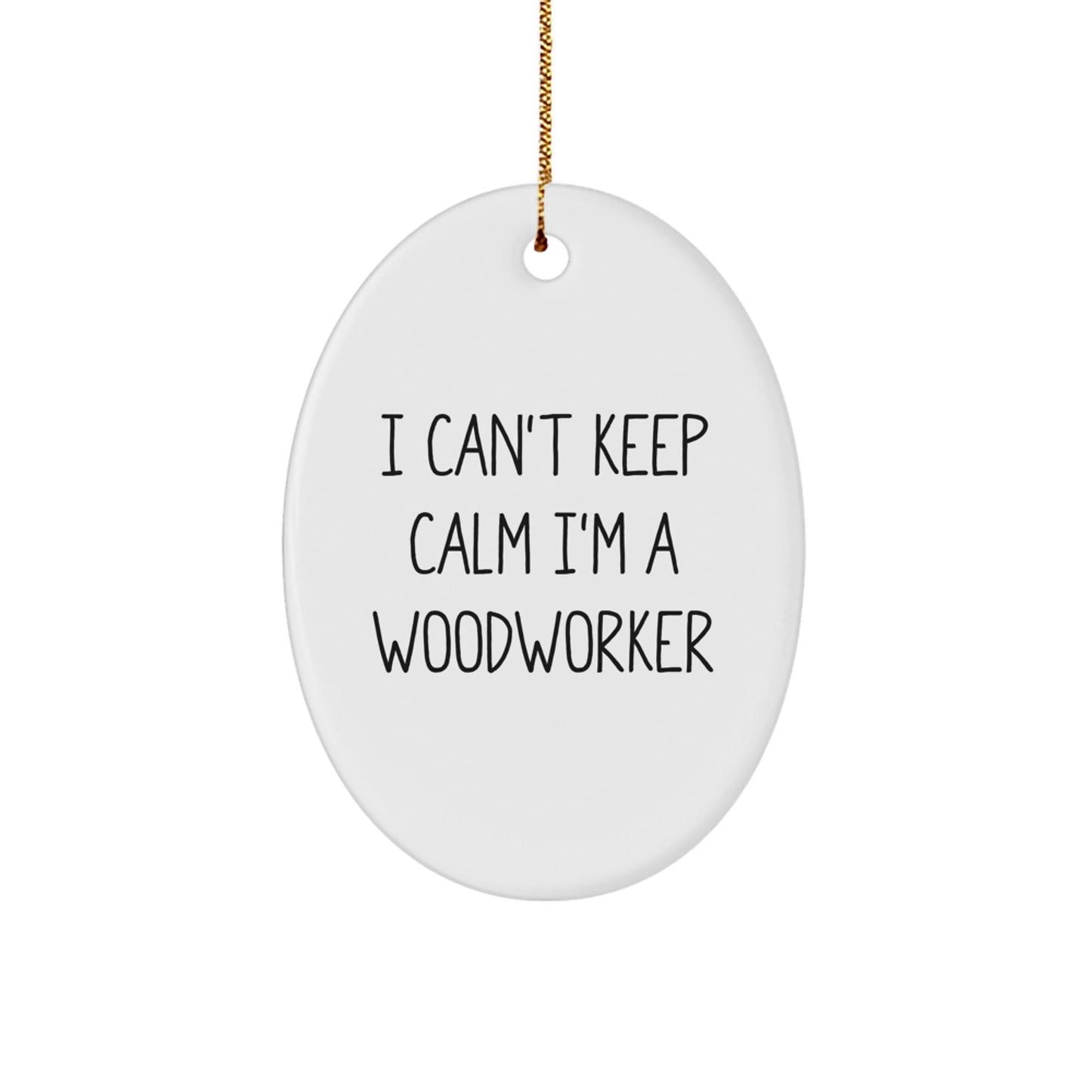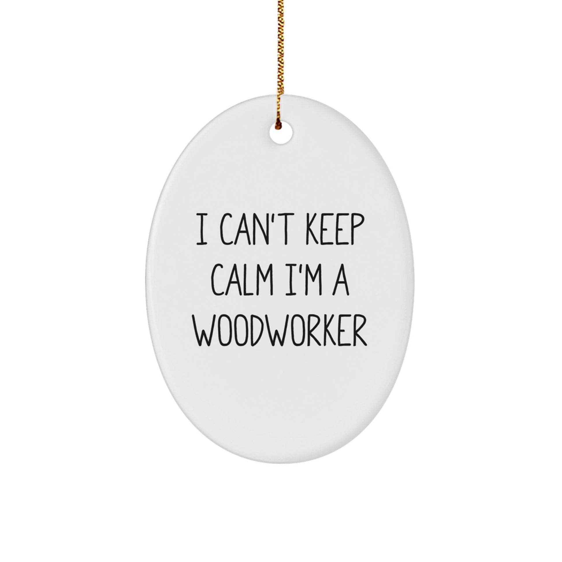 Are you a woodworker enthusiast or looking for a unique gift for the woodworker in your life? Look no further! Our 'I Can't Keep Calm I'm A Woodworker' Oval Ornament is the perfect addition to any woodshop or home. Made from sturdy MDF with a high-gloss plastic finish, this ornament is vibrantly printed from edge-to-edge via Sublimation, ensuring bright, vivid colors. With its lightweight and resistant to breaking design, it's a great choice for households with children or pets. The festive gold cord makes it easy to hang, perfect for stress-free decorating. Whether you're a woodworker yourself or know someone who is, this ornament is a thoughtful gift for any occasion. Send it as a gift from family, friends, or coworkers to men, women, or fellow woodworkers this Christmas.
