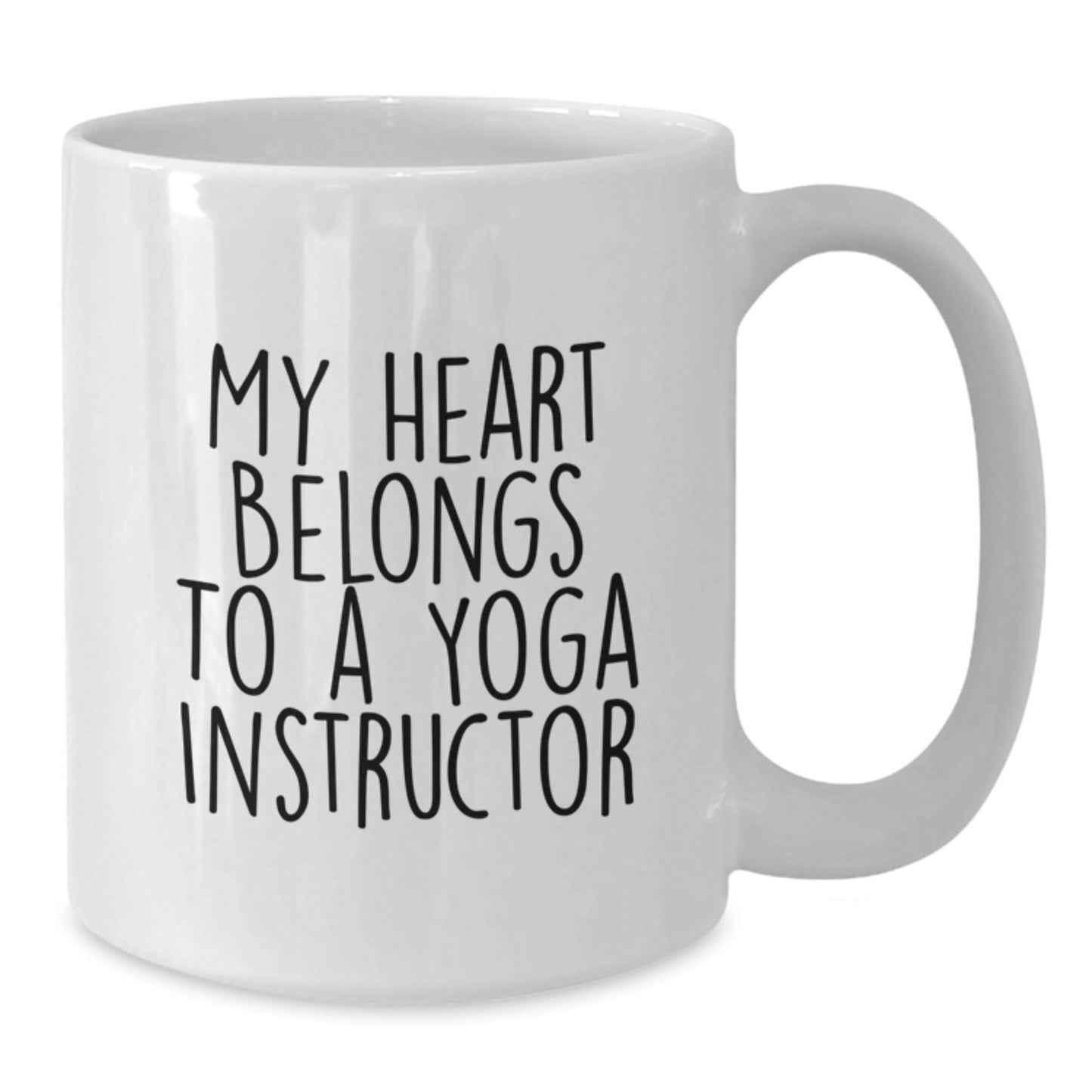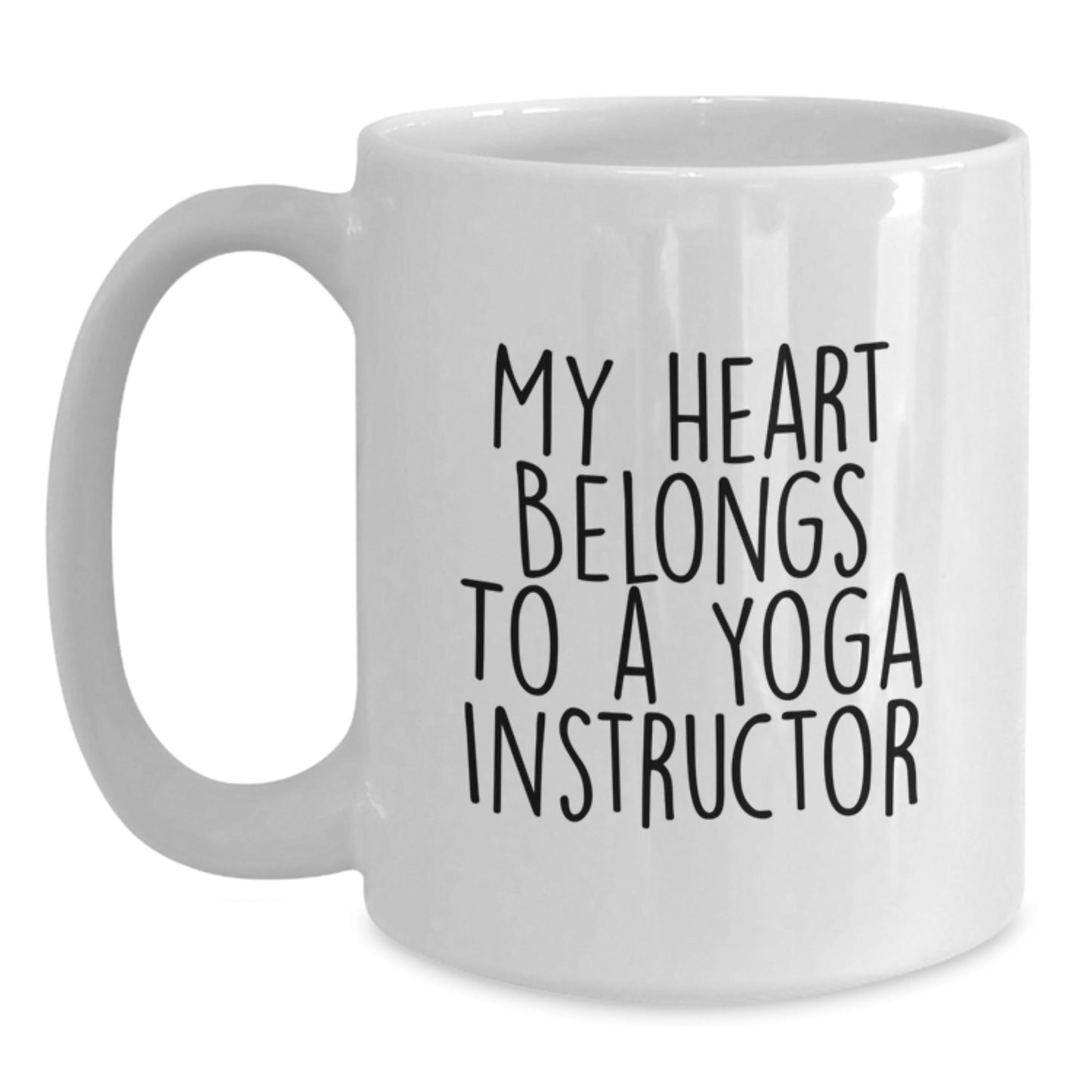 Are you a yoga enthusiast or looking for a unique gift for your favorite yoga instructor? This 'My Heart Belongs To A Yoga Instructor' white coffee mug is the perfect way to show your appreciation and support. Made from ceramic and available in 11oz or 15oz capacity, this mug is microwave and dishwasher safe, making it easy to clean and use.