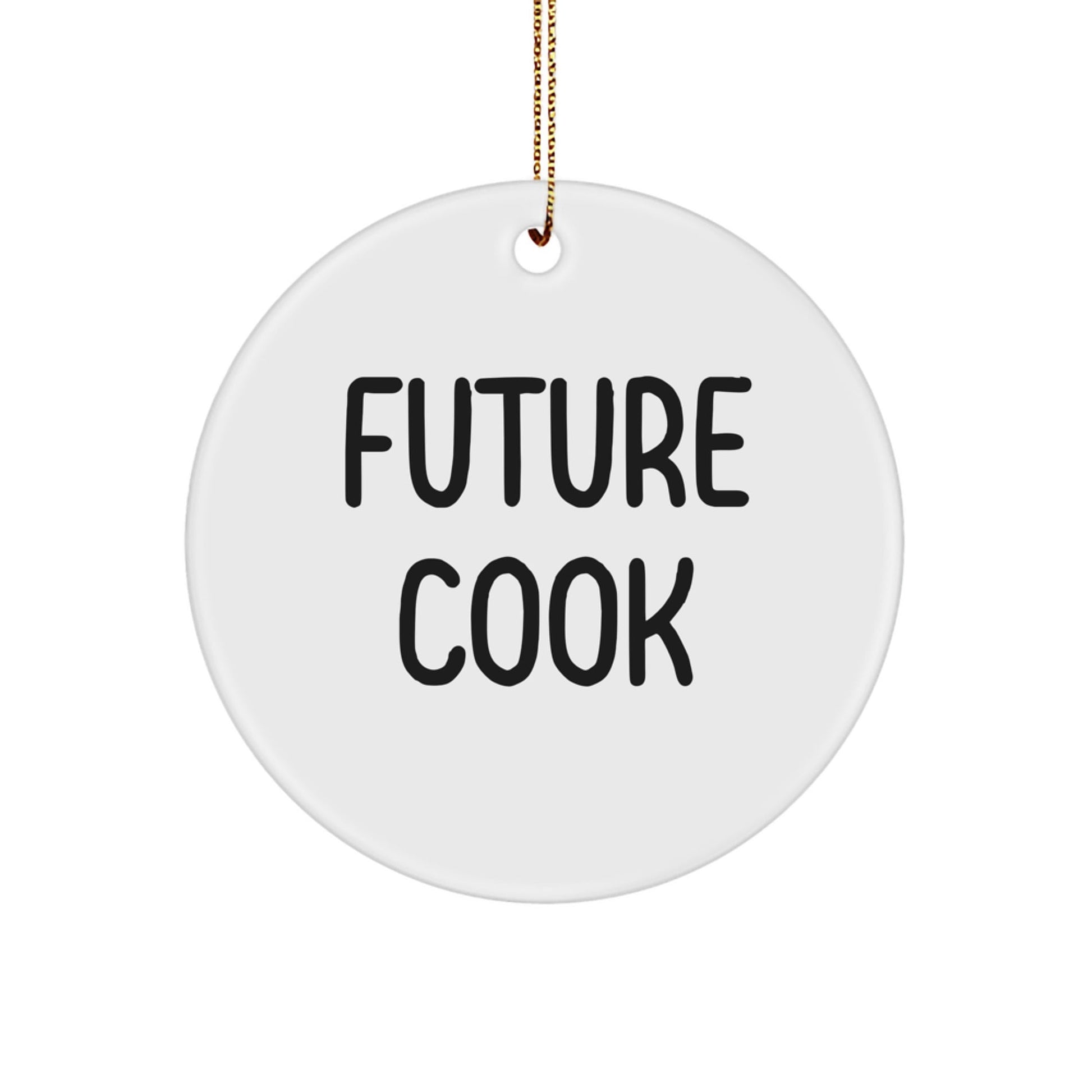 Add a personal touch to your holiday decor and gifts with our 'Future Cook' Circle Ornament. Don't miss out and spread the joy of cooking to those around you!