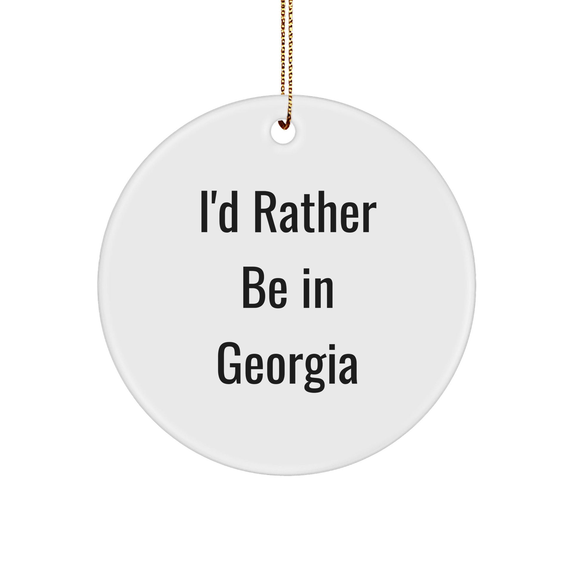 If you're a Georgia enthusiast or looking for a unique gift for someone from Georgia, this Circle Ornament is the perfect choice. Vibrantly printed with a high-gloss finish, this ornament features the iconic quote 'I'd Rather Be in Georgia' in bright, vivid colors. Made from sturdy MDF with a lightweight and resistant design, it's perfect for households with children or pets. This ornament makes a thoughtful gift for friends, family, or coworkers who love Georgia. Whether you're decorating your Christmas tree or giving a gift to someone special, this ornament is sure to bring a smile. So why wait? Get your Georgia Circle Ornament today and spread some southern charm!
