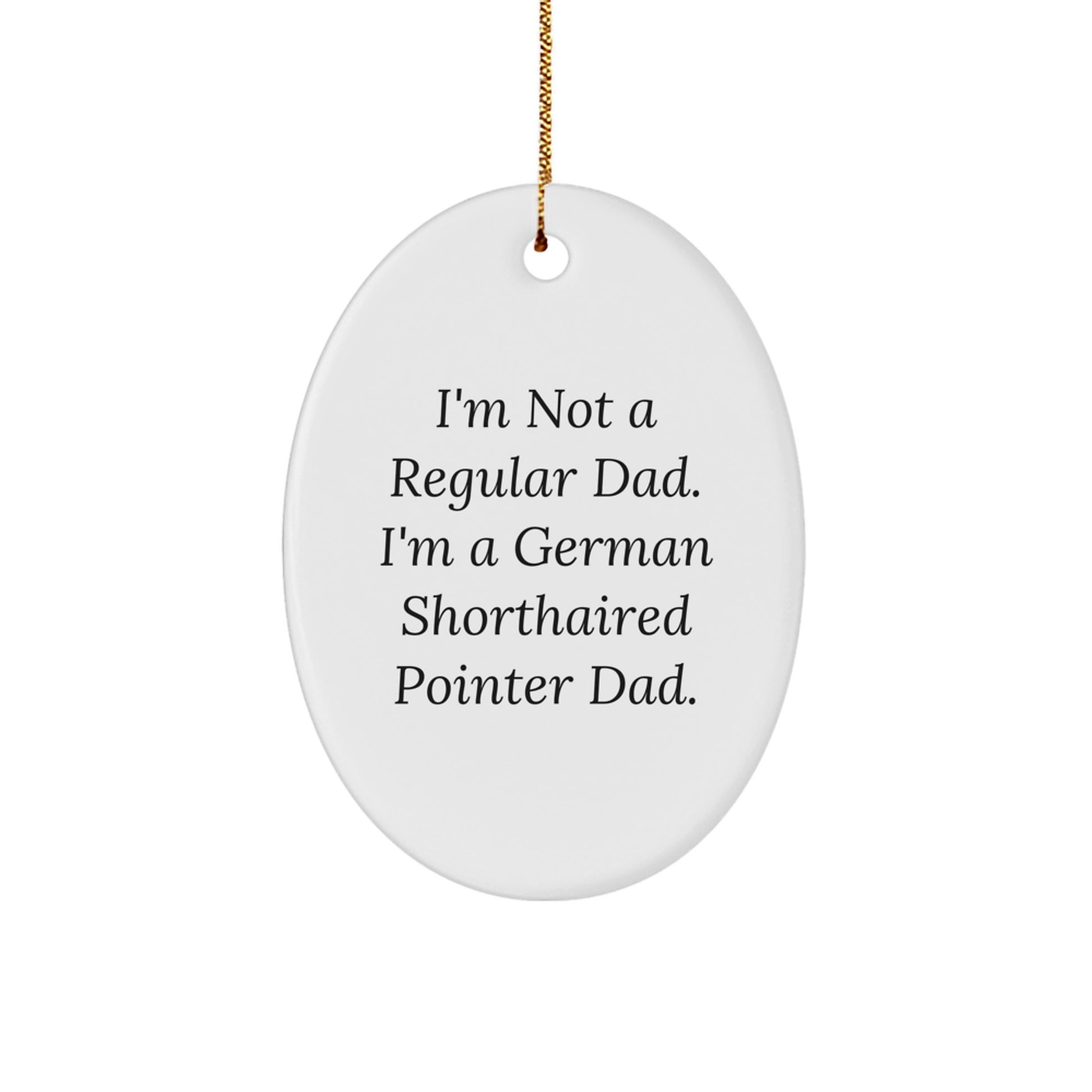 - Bring a smile to the face of the German Shorthaired Pointer dad in your life with this fun and unique Oval Ornament. Made from sturdy MDF with a high-gloss plastic finish, this ornament is lightweight, resistant to breaking, and features a vibrant print from edge-to-edge, ensuring a bright and vivid design.