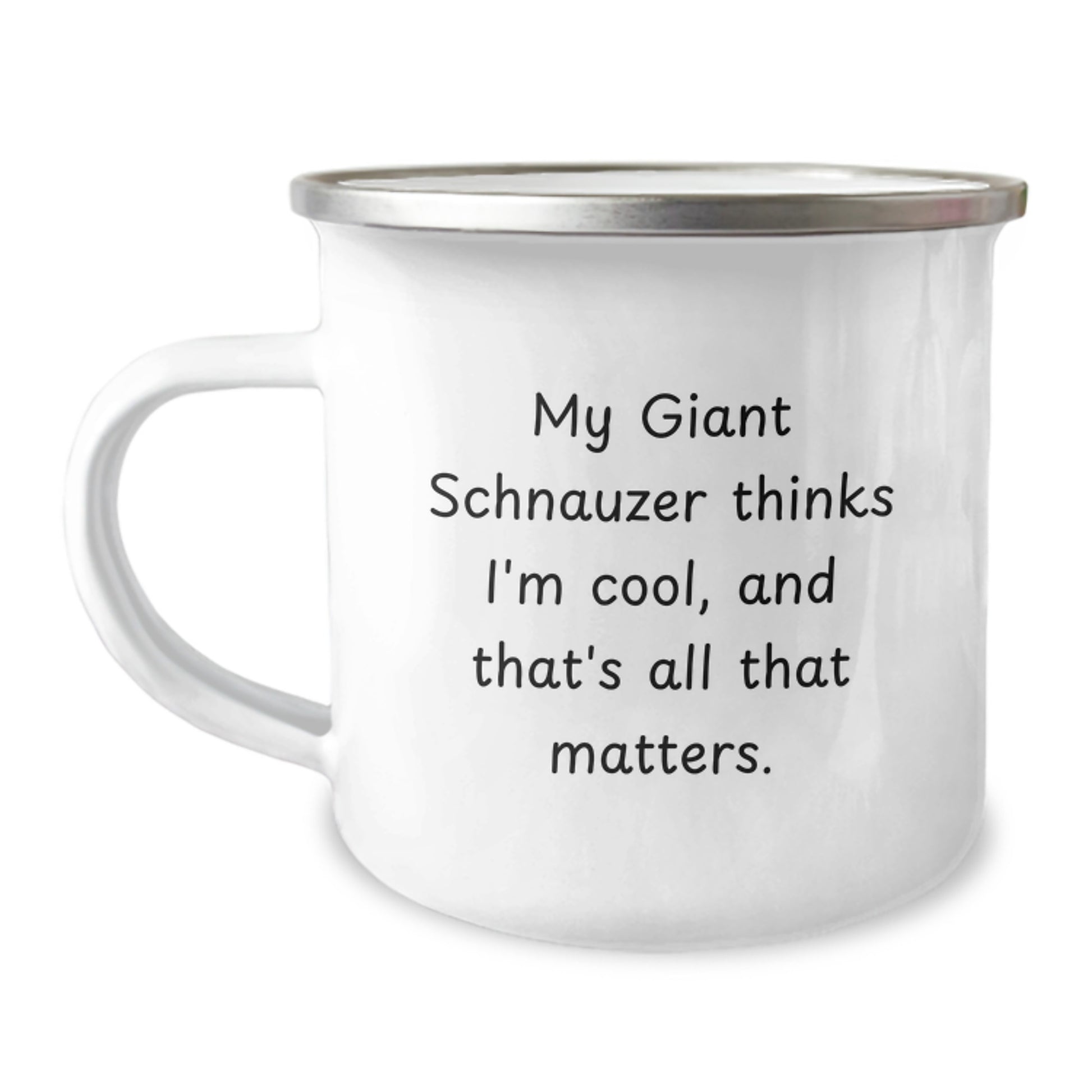 "keywords": "Giant Schnauzer Dog, Camping Mug, Birthday, Gifts from Friends, My Giant Schnauzer Thinks I'm Cool, And That's All That Matters, Funny Quote, Unique Gifts, Birthday Gifts for Giant Schnauzer Dog Owners, Gifts for Men, Gifts for Friends, Gifts for Family