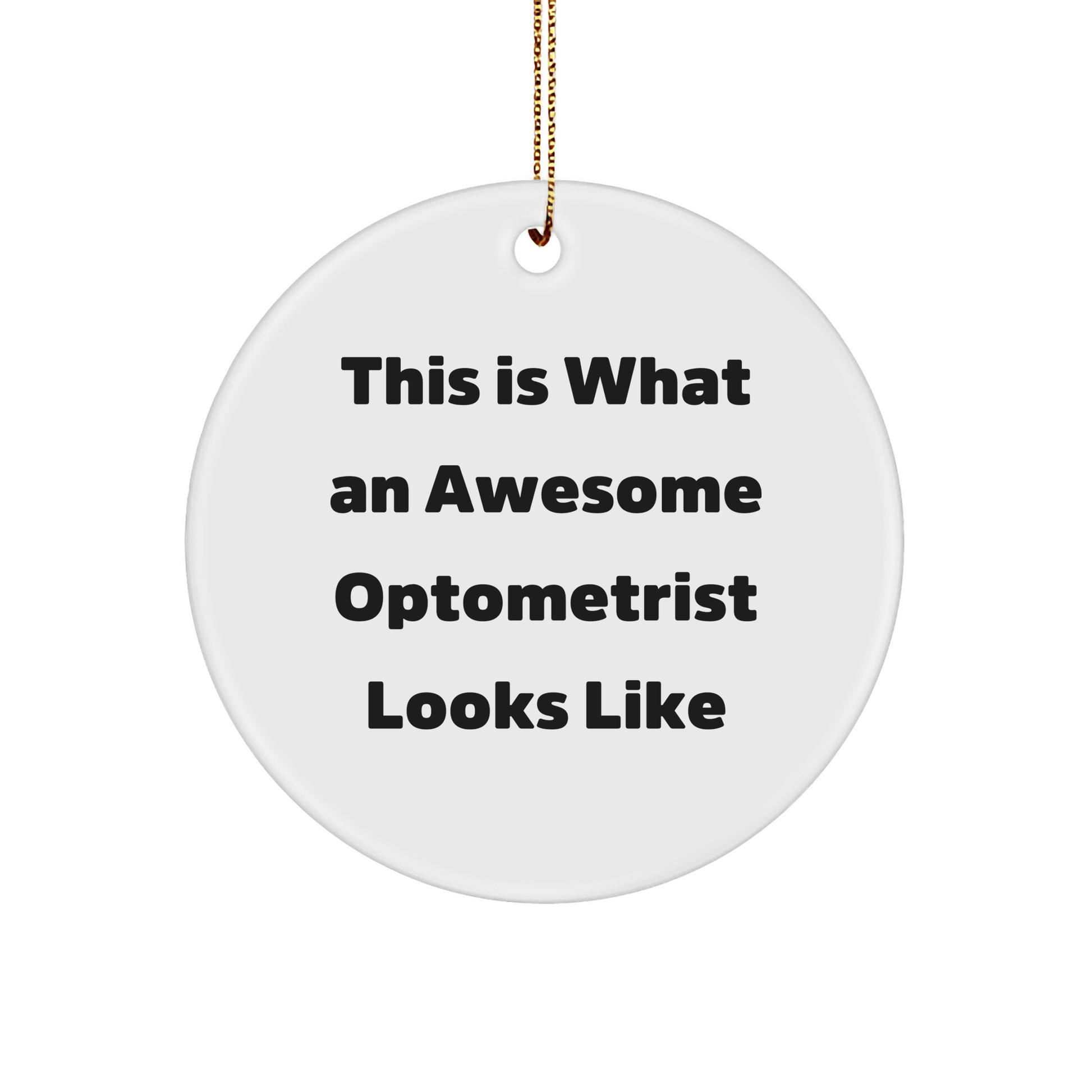 - 'This Is What An Awesome Optometrist Looks Like' inspiration awaits with our Circle Ornament! A thoughtful gift for optometrists and their loved ones, it's a unique way to celebrate their dedication to vision care. With its vibrant white color and circular design, this ornament can be proudly displayed on the Christmas tree or used as a thoughtful desk decoration.