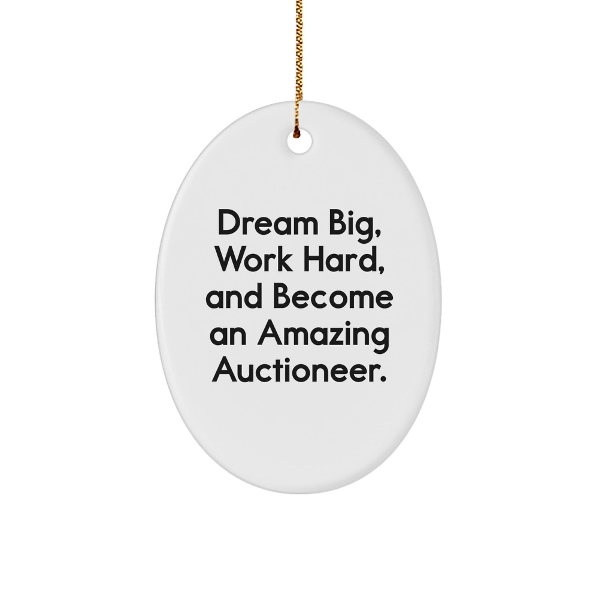 - This oval ornament is a unique and thoughtful gift for any auctioneer, featuring an inspirational quote to remind them of their hard work and dedication.