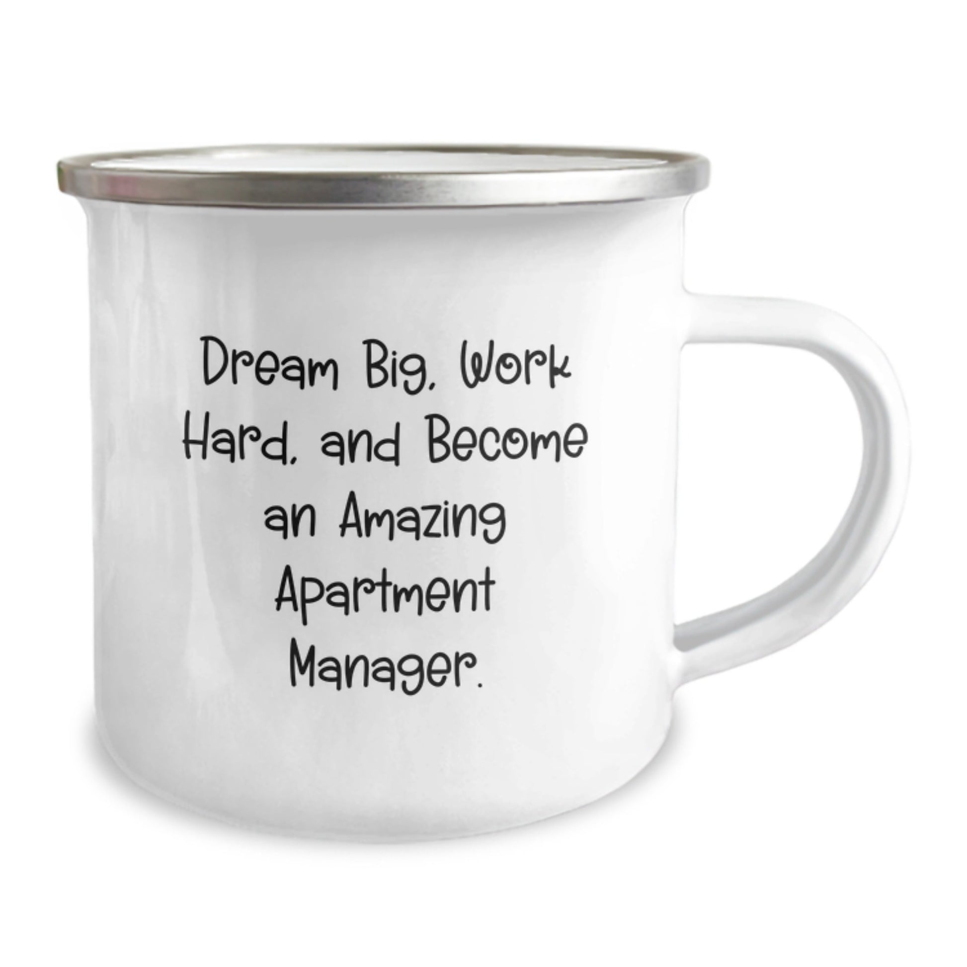 - As an Apartment Manager, celebrate your journey to success with this camping mug, featuring the inspiring quote 'Dream Big, Work Hard, And Become An Amazing Apartment Manager.' Perfect for daily use, whether you're camping, hiking, or just enjoying a quiet morning in the office.,