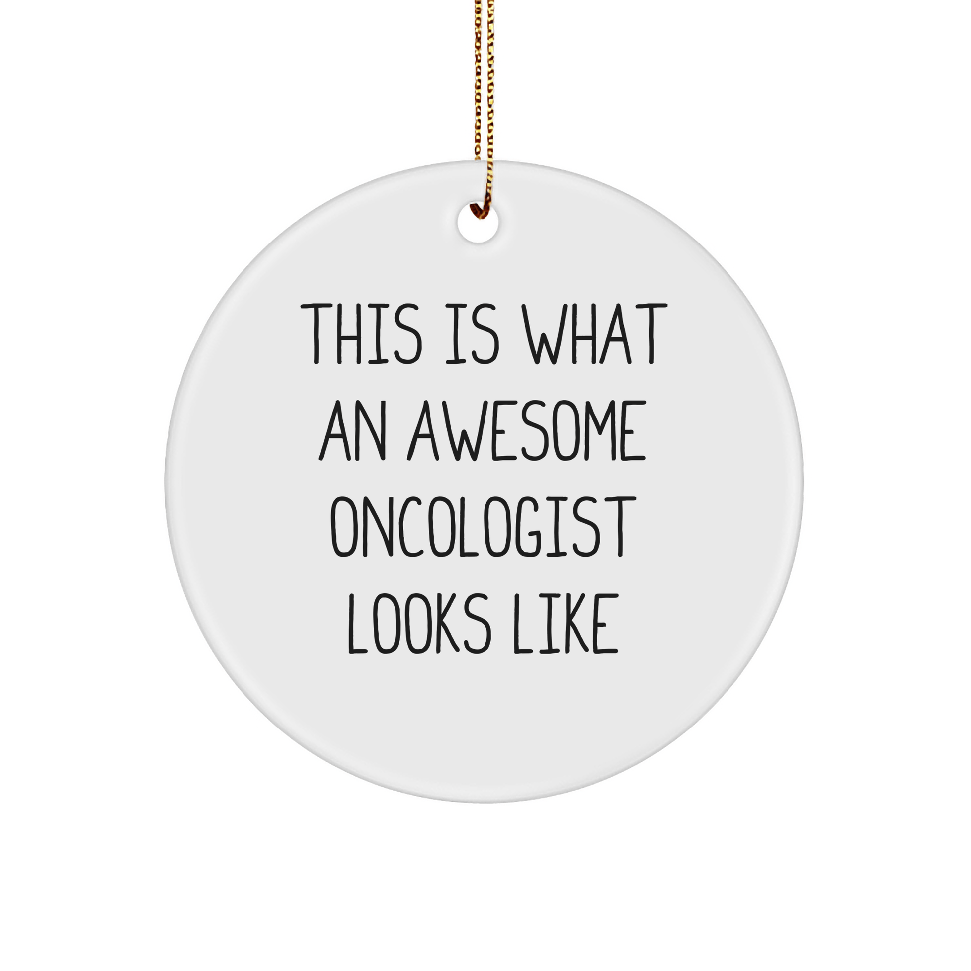 This circle ornament is a thoughtful and inspirational gift that will remind the oncologist in your life of the importance of their work. The quote 'This Is What An Awesome Oncologist Looks Like' is a great reminder of the impact they have on their patients' lives.