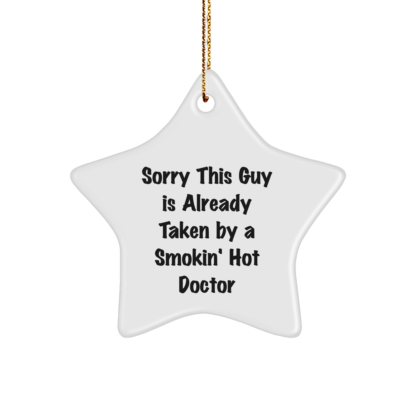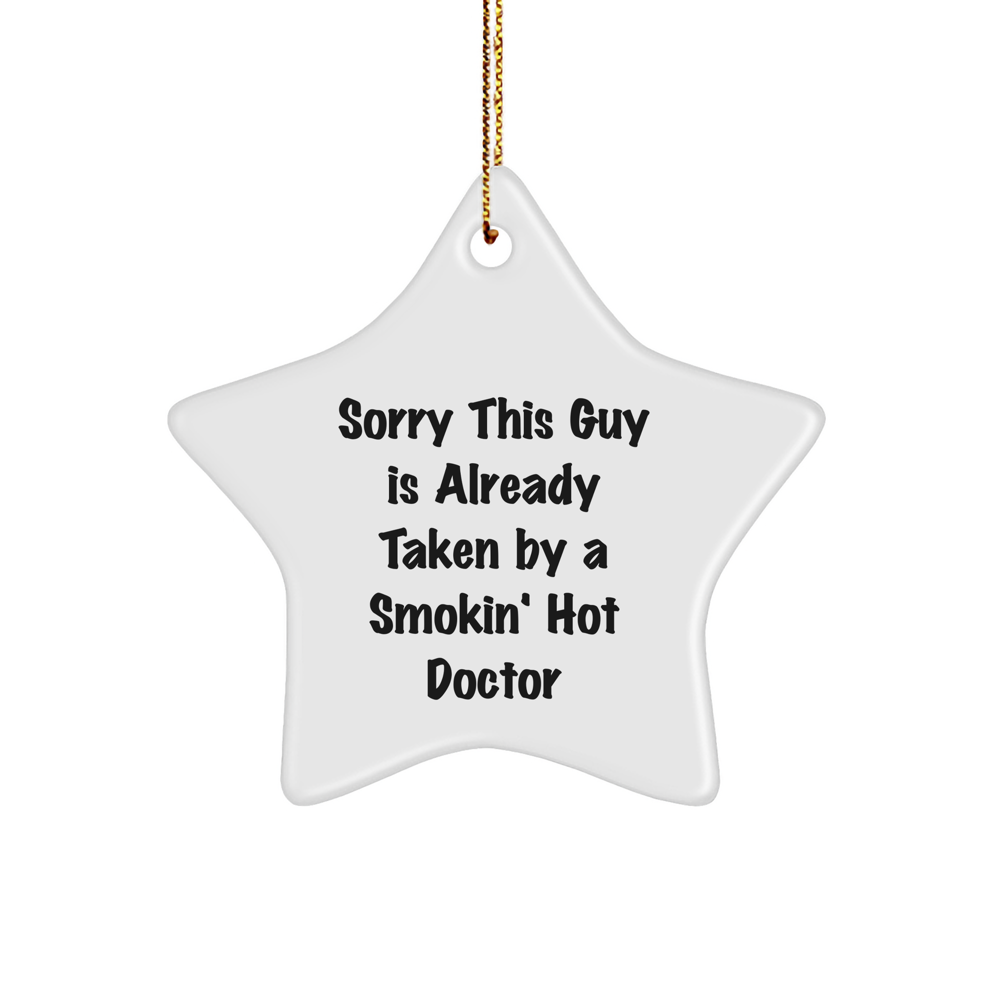 - Make a bright start to the holiday season with our 'Sorry This Guy Is Already Taken By A Smokin' Hot Doctor' Star Ornament, expertly crafted by a doctor's precision to bring a touch of stardom to your Christmas decor.,