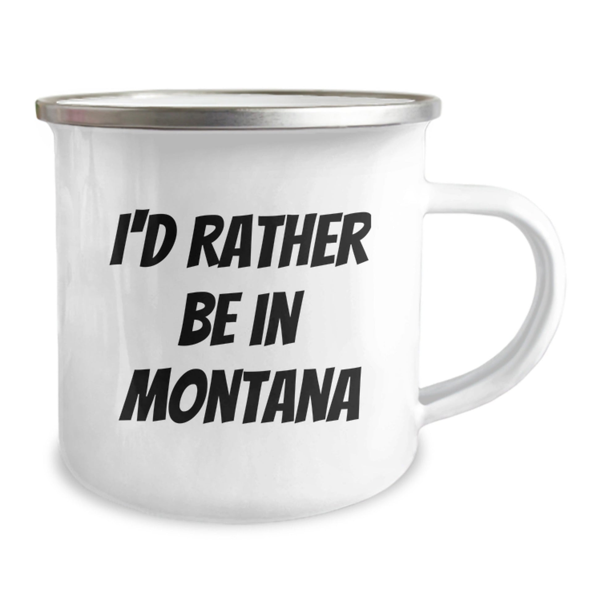 Are you looking for a unique gift for a Montana enthusiast or a birthday gift for someone who loves the great outdoors? Look no further! This 'I'd Rather Be In Montana' Camping Mug is a thoughtful and inspiring gift that will surely be cherished. The quote is a funny and relatable phrase that many Montana lovers will appreciate. Whether you're shopping for a friend, family member, or coworker, this gift is sure to bring a smile to their face. The stainless steel mug is sturdy and easy to clean, making it a great addition to any camping or outdoor adventure. So why wait? Send a thoughtful gift from friends to a loved one and make their birthday or any special occasion even more memorable.