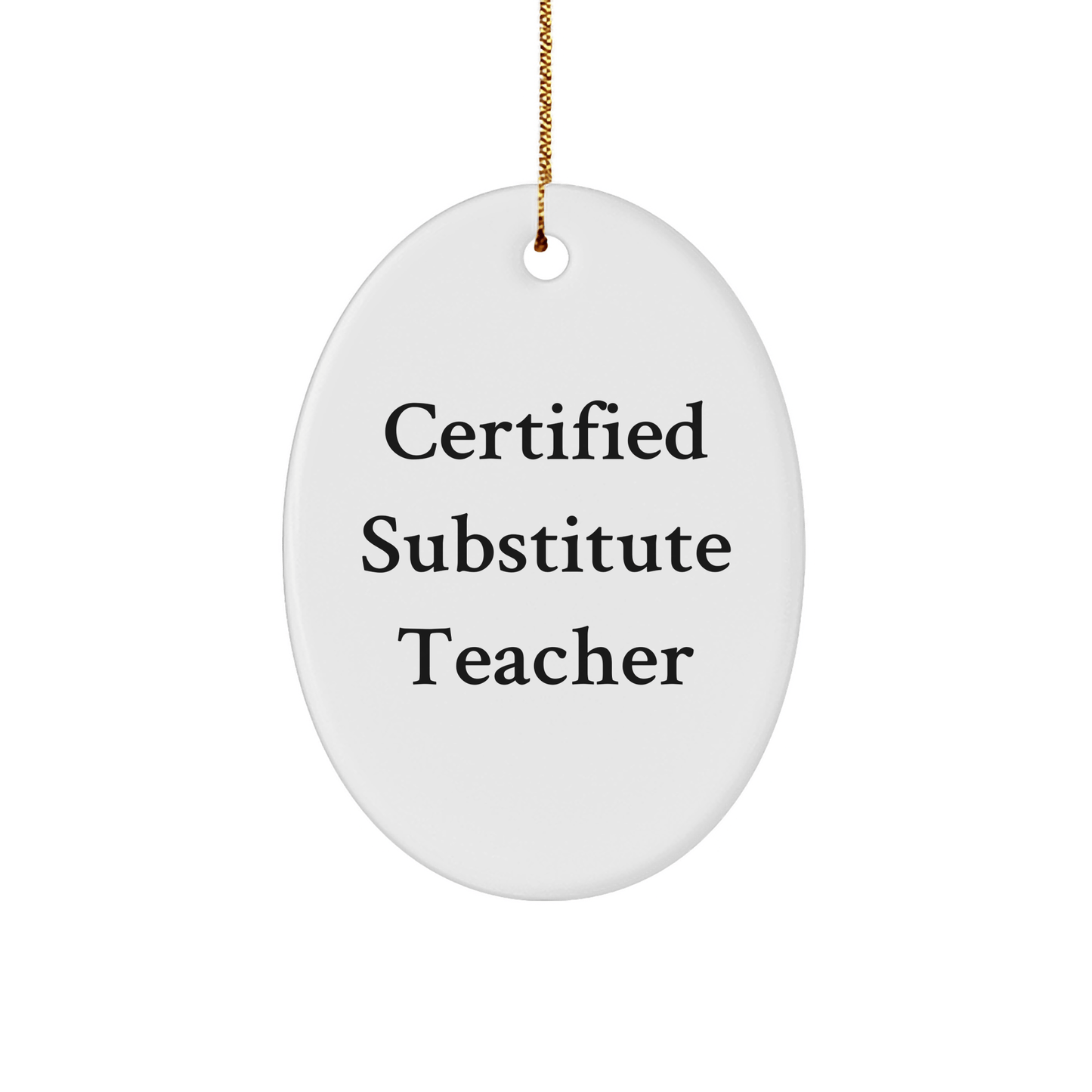 - This oval ornament is a unique and thoughtful gift for Substitute Teachers, featuring a funny quote that will bring a smile to their face.