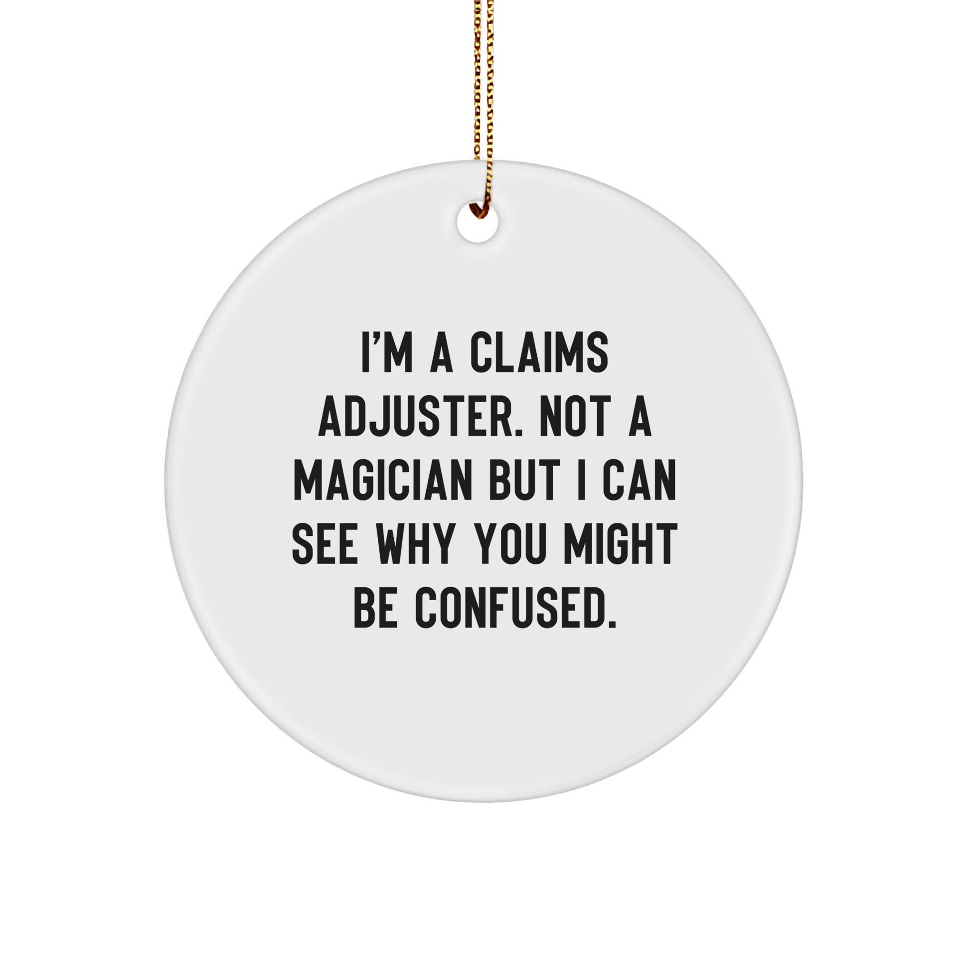 - Get your 'I'm A Claims Adjuster. Not A Magician...' Circle Ornament today and make this holiday season one to remember, perfect for gifting to friends, family, or coworkers