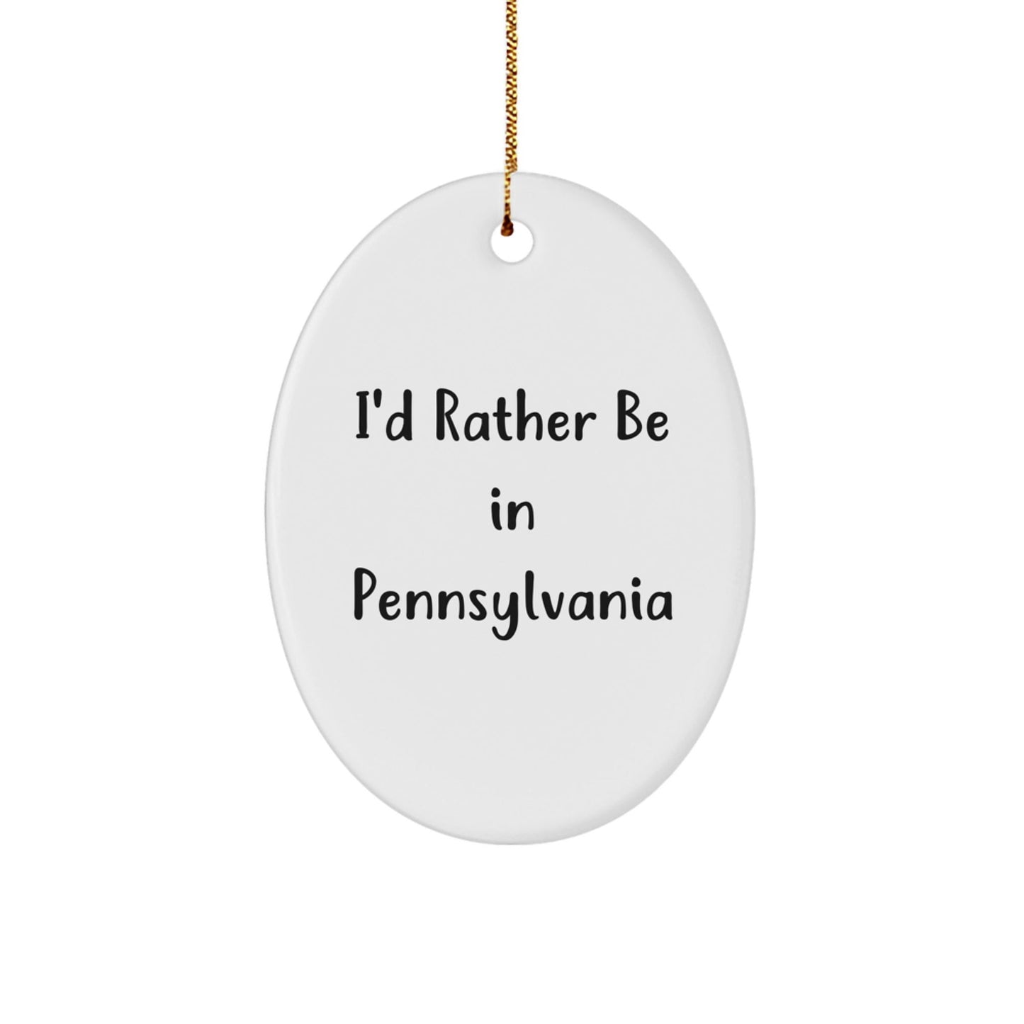 - This oval ornament is a unique and thoughtful gift for friends, family, or coworkers who love Pennsylvania. The funny quote 'I'd Rather Be In Pennsylvania' is printed in a vibrant, high-gloss finish that is sure to catch their eye.