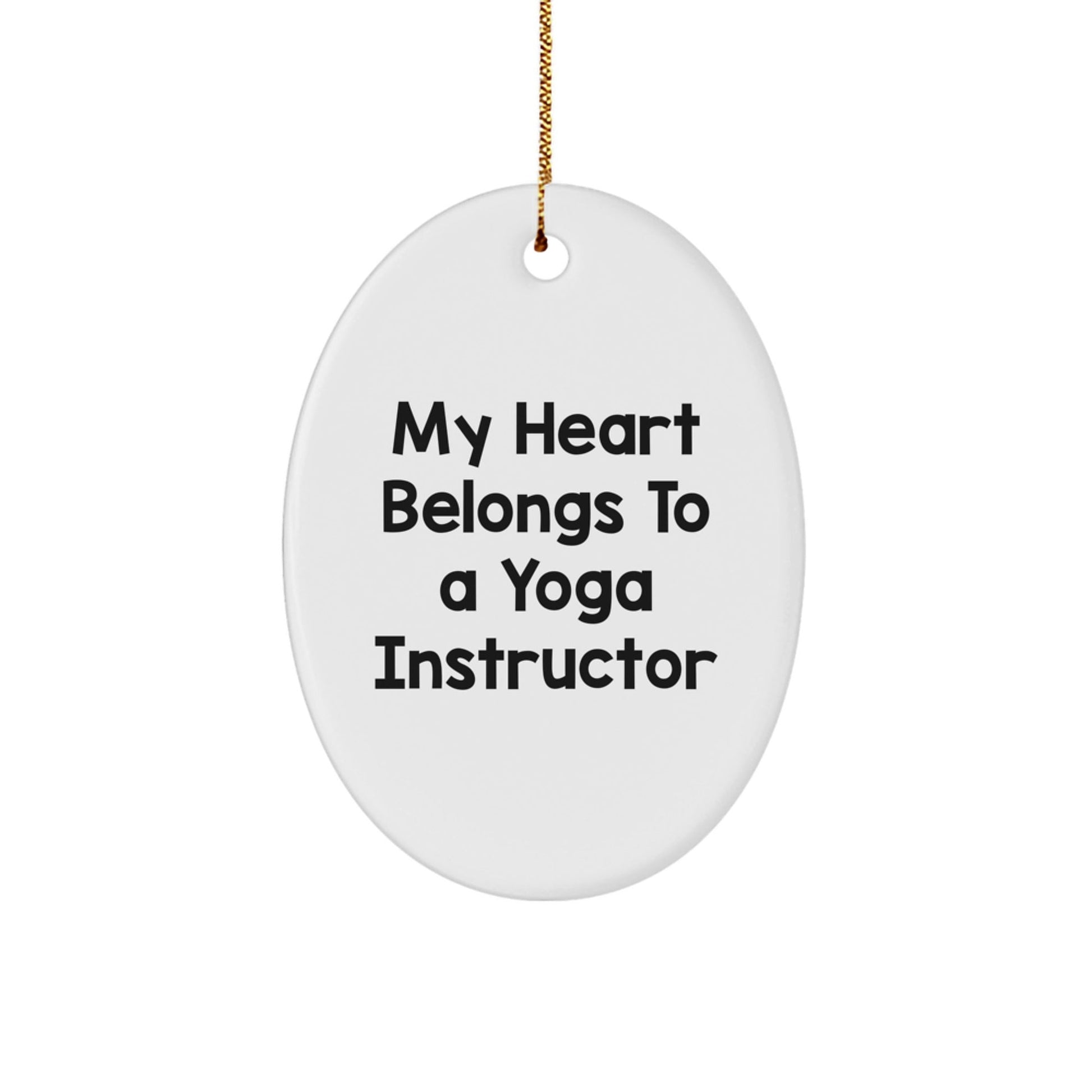 - Order this 'My Heart Belongs To A Yoga Instructor' oval ornament today and show your yoga instructor that you care, perfect for Christmas gifts or any other special occasion.
